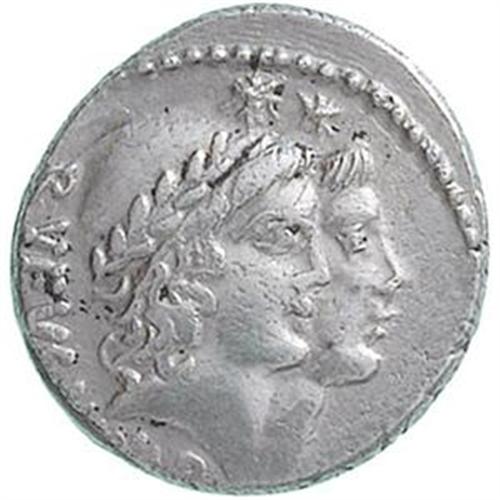 Repubblica Romana. Mn. Cordius Rufus. Denarius, 46 a.C. D/ Teste affiancate dei Dioscuri a destra. R/ Venere Verticordia stante a sinistra. Cr. 463/1a. B. 2. gr. 3.93 AG. Bel BB/BB+. Fondi lucenti.