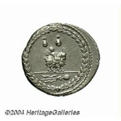 Mn. Fonteius C. f. 85 B.C. AR denarius (18 mm, 3.71 g). Laureate head of Apollo Vejovis right; thunderbolt below, monogram below chin / Infant Genius riding goat right; caps of the Dioscuri above, filleted thyrsus below. Crawford 353/1a; Sydenham 724; Fonteia 9. Good VF, porosity behind head. Important notice: Heritage usually auctions material at the rate of 200-250 lots per hour. On some occasions eBay Live bid software or the Internet may not be able to keep up with the pace of the auction. We recommend placing a realistic absentee bid now as insurance to avoid disappointment. Occasionally the auctioneer may eliminate or reject an eBay Live bid, and the auctioneer may also reopen a lot after the close of the eBay live bidding (usually because we missed an audience bid), and may reject your bid even if it shows you as the winning bidder. By bidding via eBay Live, you agree that Heritage may award the lot to another bidder at its sole discretion under the circumstances described above or any other reasonable circumstances. Also please note that all Heritage lots purchased through eBay Live carry a 20% Buyer's Premium. Please make sure you read the Terms and Conditions before you bid.