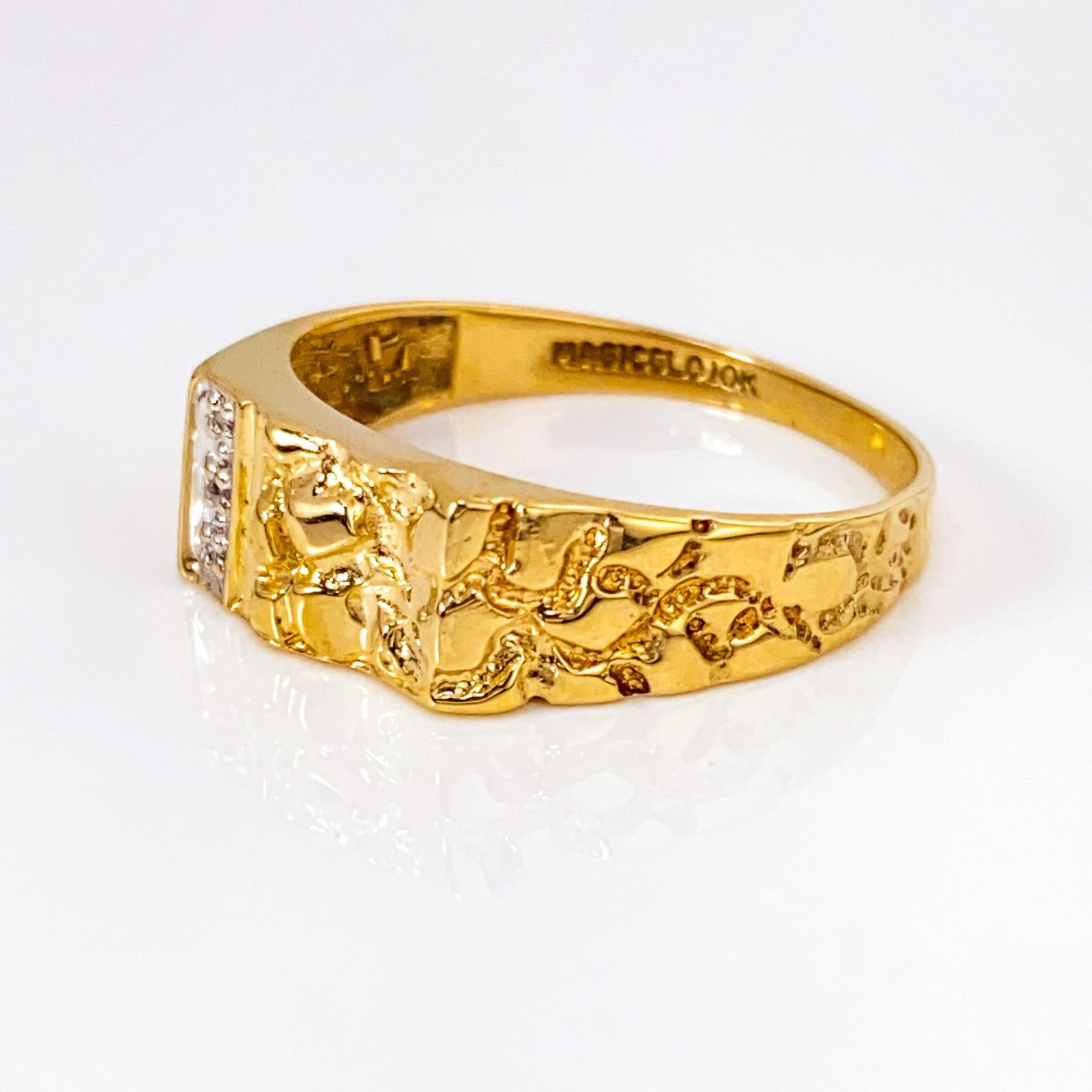 Mns 10k yg Nugget Pinky Ring w/ Diamonds