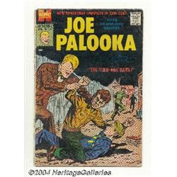 <B>Mo Marcus (attributed) - Joe Palooka #101 Cover Original Art (Harvey, 1957).</B></I> Joe Palooka breaks up a rumble, and does his best as a solid, upstanding citizen to reform troubled youth. Joe Palooka's face is a stat. The image area of the art is 10.5" x 16". The Joe Palooka character stamp has slipped off the art; otherwise the cover is in Excellent condition. A copy of the comic book is included with this lot. Add some punch to your portfolio with a Joe Palooka cover! 2 items <BR><BR><B>Important notice:</B> Heritage usually auctions material at the rate of 200-250 lots per hour. On some occasions eBay Live bid software or the Internet may not be able to keep up with the pace of the auction. We recommend placing a realistic absentee bid now as insurance to avoid disappointment. Occasionally the auctioneer may eliminate or reject an eBay Live bid, and the auctioneer may also reopen a lot after the close of the eBay live bidding (usually because we missed an audience bid), and may reject your bid even if it shows you as the winning bidder. By bidding via eBay Live, you agree that Heritage may award the lot to another bidder at its sole discretion under the circumstances described above or any other reasonable circumstances. Since eBay bids are not shown to us until we open the lot on the floor, we treat those bids just like floor bids. In most cases the floor responds before the eBay bid is presented to us, due to Internet lag time, so for consistency we have made it a policy that floor bids are always considered first over tie eBay live bids. Also please note that all Heritage lots purchased through eBay Live carry a 20% Buyer's Premium. Please make sure you read the Terms and Conditions before you bid.