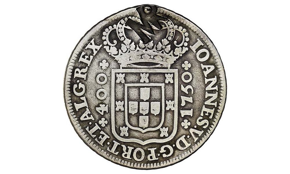 Carimbo “MR” sobre Cruzado novo 1750 (80.02) de D. João V BC+