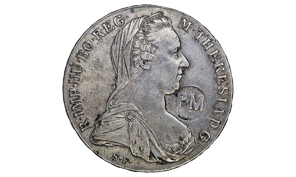 Carimbo “PM” sobre Thaler 1780 (1824-30) da Áustria MBC