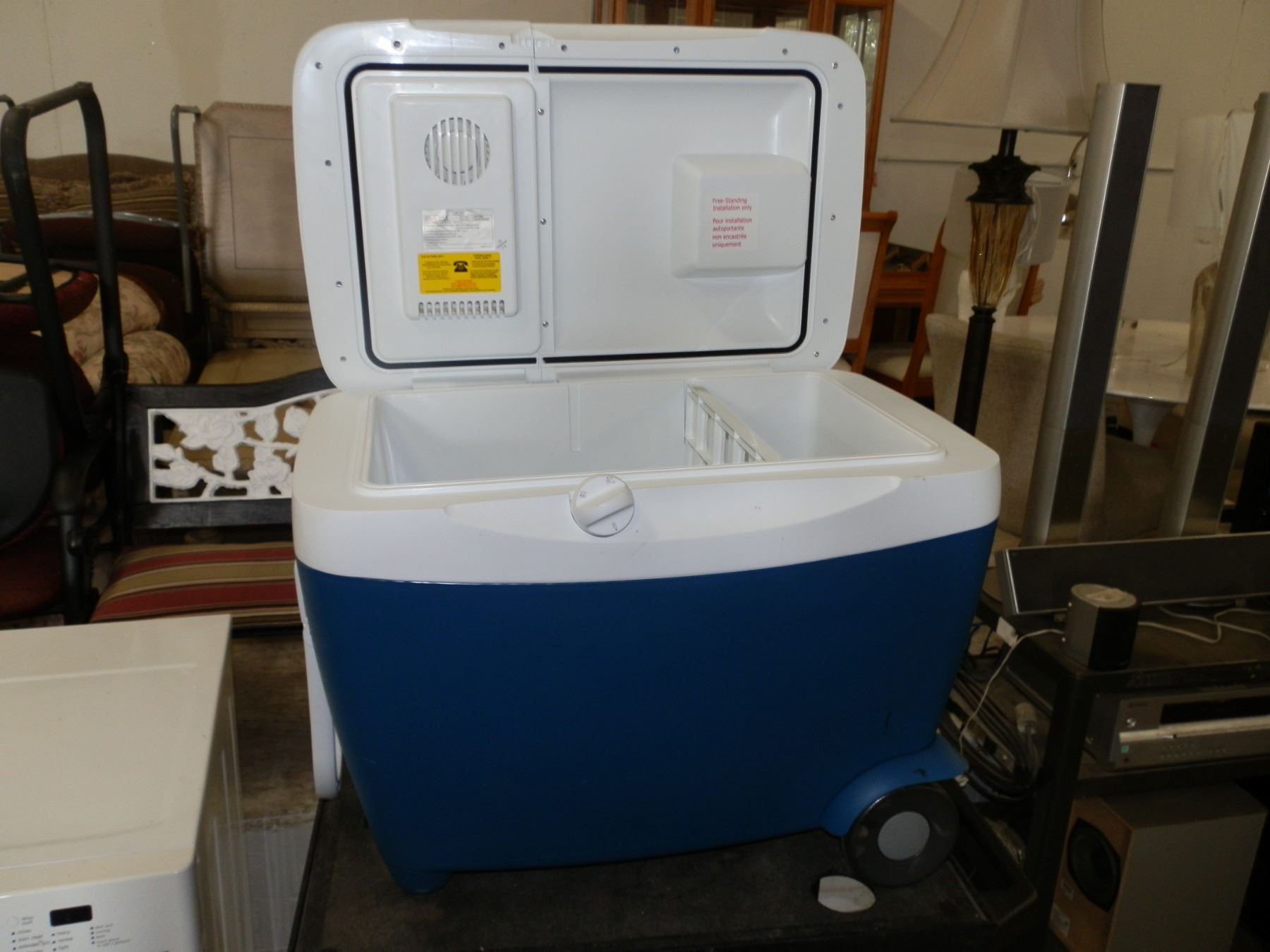 Mobi Cooler you can plug it into your car or the wall, can keep things cool or warm, in good working condition, like new