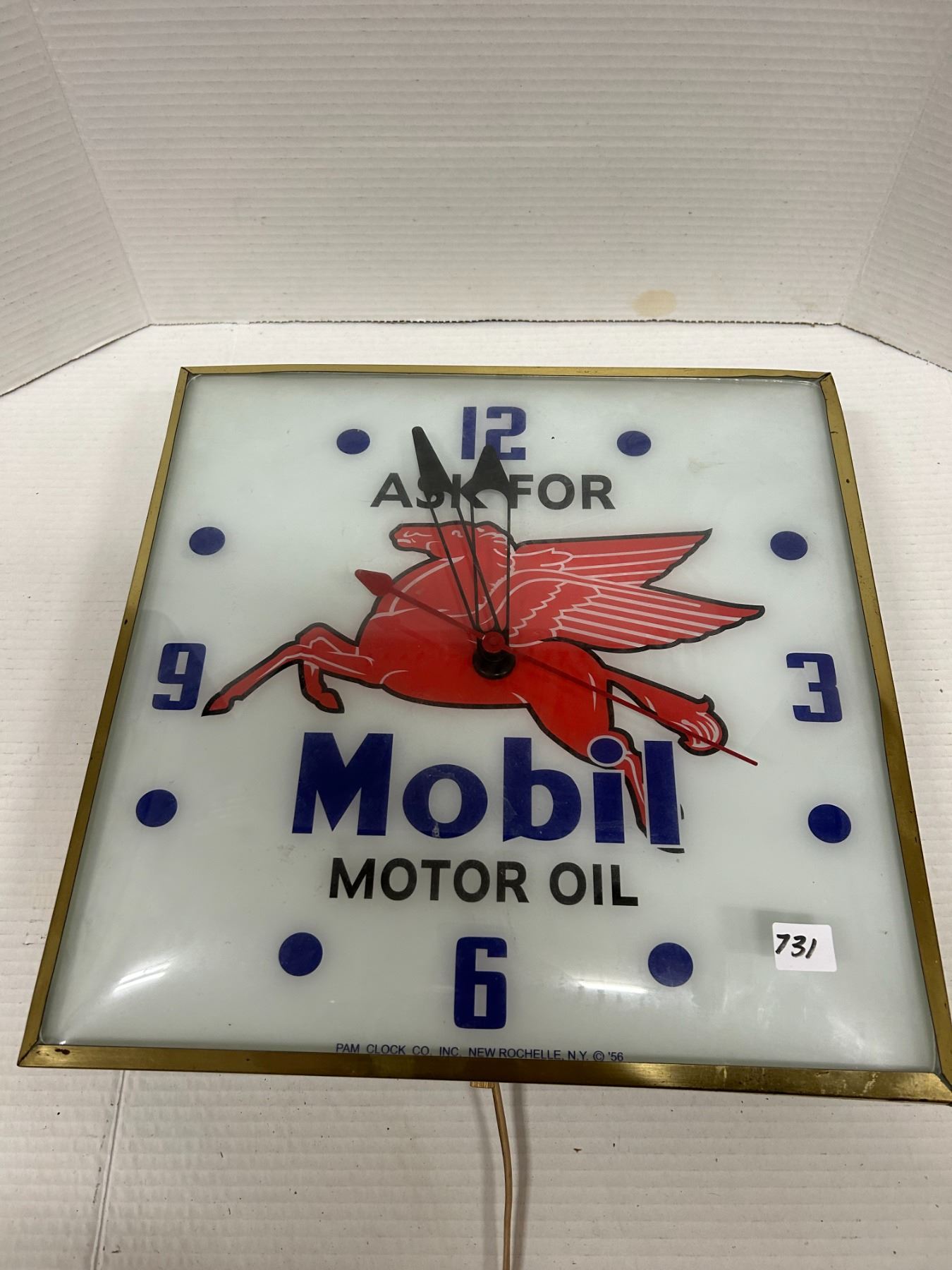 Mobil Motor Oil Clock - Pegasus, 1956 PAM Clock Company - Convex glass working