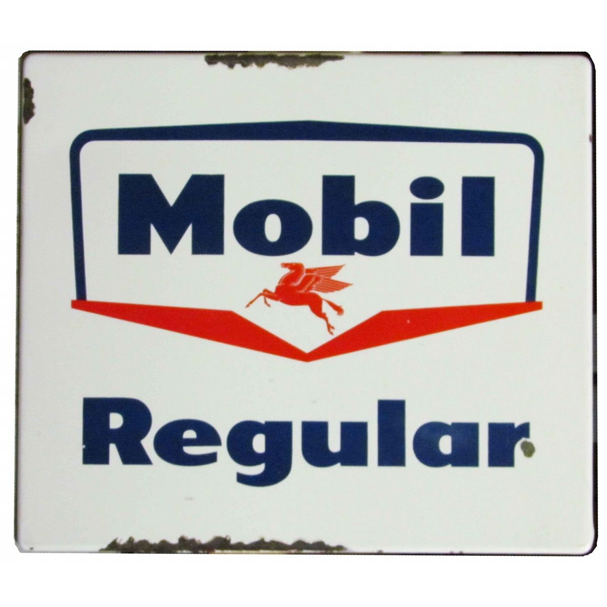 Mobil Regular Porcelain Pump Signs. A few chips otherwise very good condition. 13 3/4 X 12 inches.