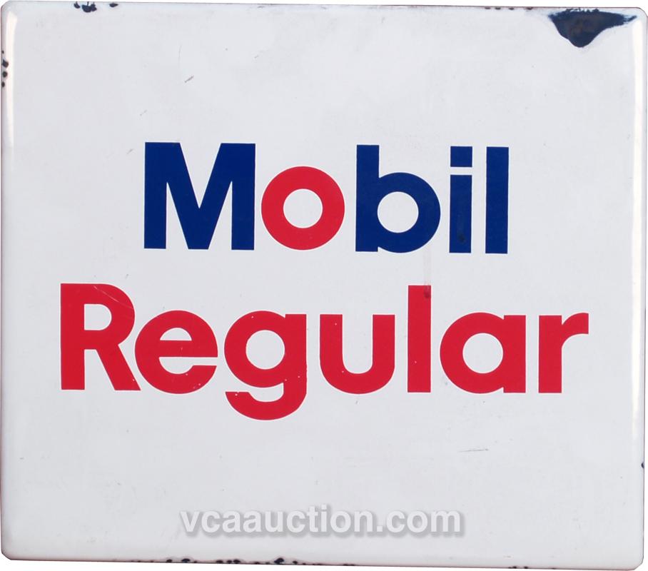 Mobil Regular Porcelain Sign w/ Wood On Back - 14" x 12"
