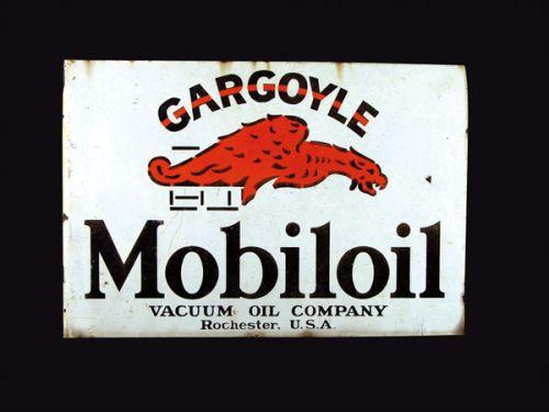 Mobile Oil Porcelain Flange Sign, gargoyle. Some staining and minor chips otherwise good condition. 21 1/2 X 14 1/2 inches.