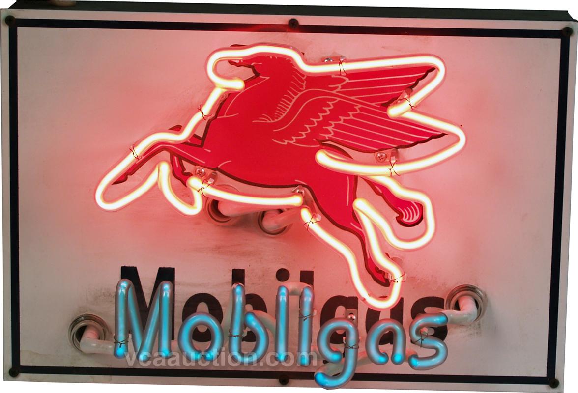 "Mobilgas" Metal & Neon Sign w/ Pegasus - 17" x 11"