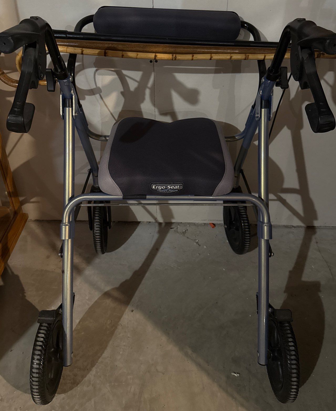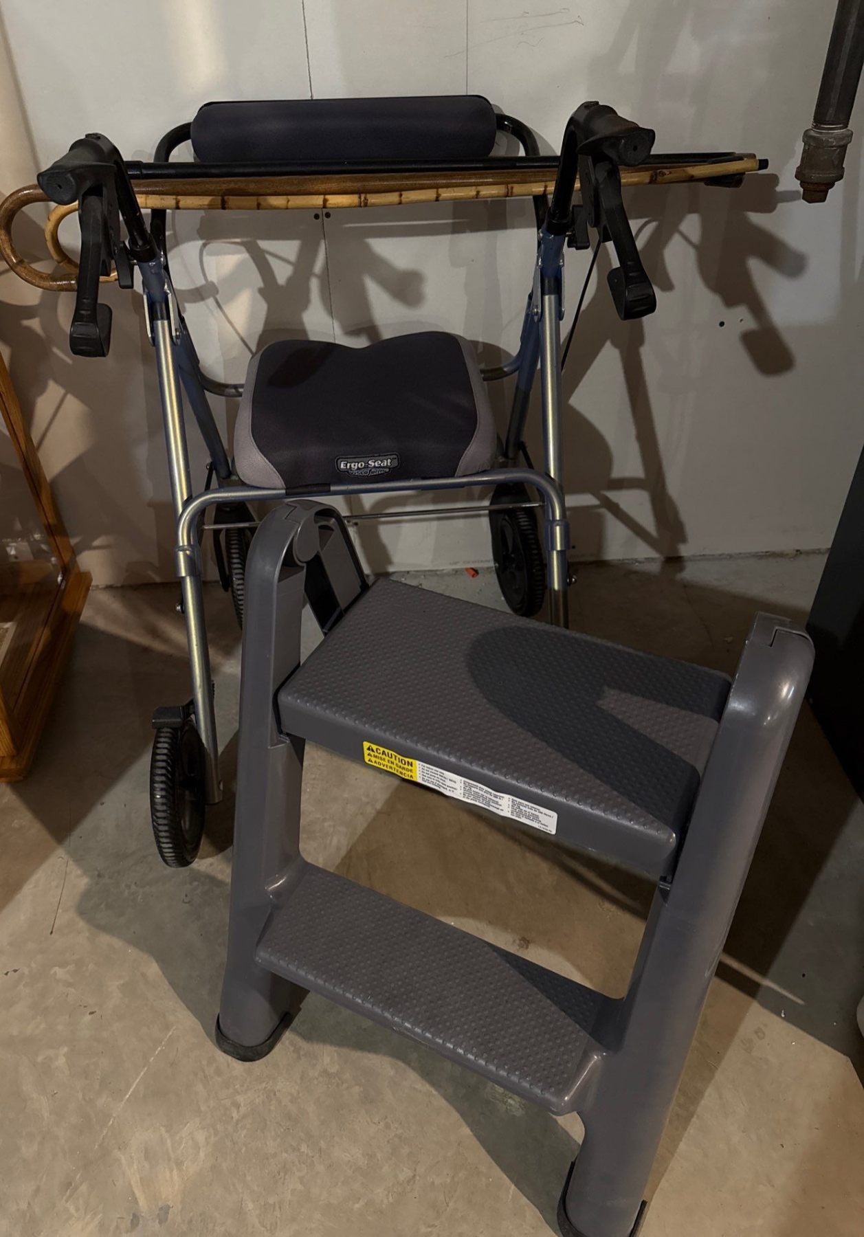 Mobility Essentials - Medical Walker w/ Step Stool & Cane Supports