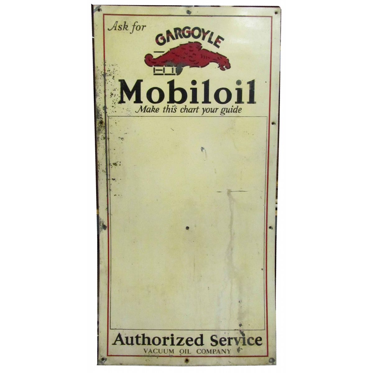 Mobiloil Gargoyle Tin Authorized Service Chart. Some rust top left, paint loss and discoloration otherwise good condition. 19 1/2 X 38 1/2 inches.