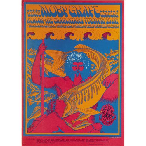 <B>Moby Grape "Neptune's Notions" Avalon Concert Poster FD-49 (Family Dog, 1967)</B></I> All but forgotten today, San Francisco's Moby Grape were riding high in 1967, following the release of their acclaimed debut album on Columbia. This poster actually precedes that June, '67 record. The band had been playing together since late 1966, and featured no less than five singer/songwriters, including troubled genius Skip Spence. Victor Moscoso contributed the underwater graphics; and another forgotten but brilliant band, the Charlatans, were the opening act. This 14" x 20" poster is a first printing, in VG++ condition.