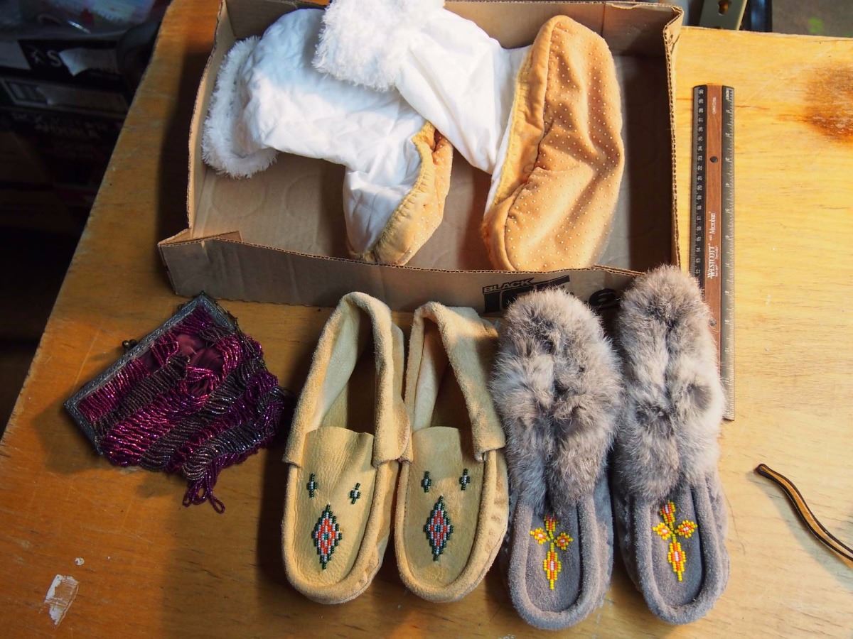 Mocassins, (2 Pairs), Mukluks (Handmade), Purple Beaded Purse