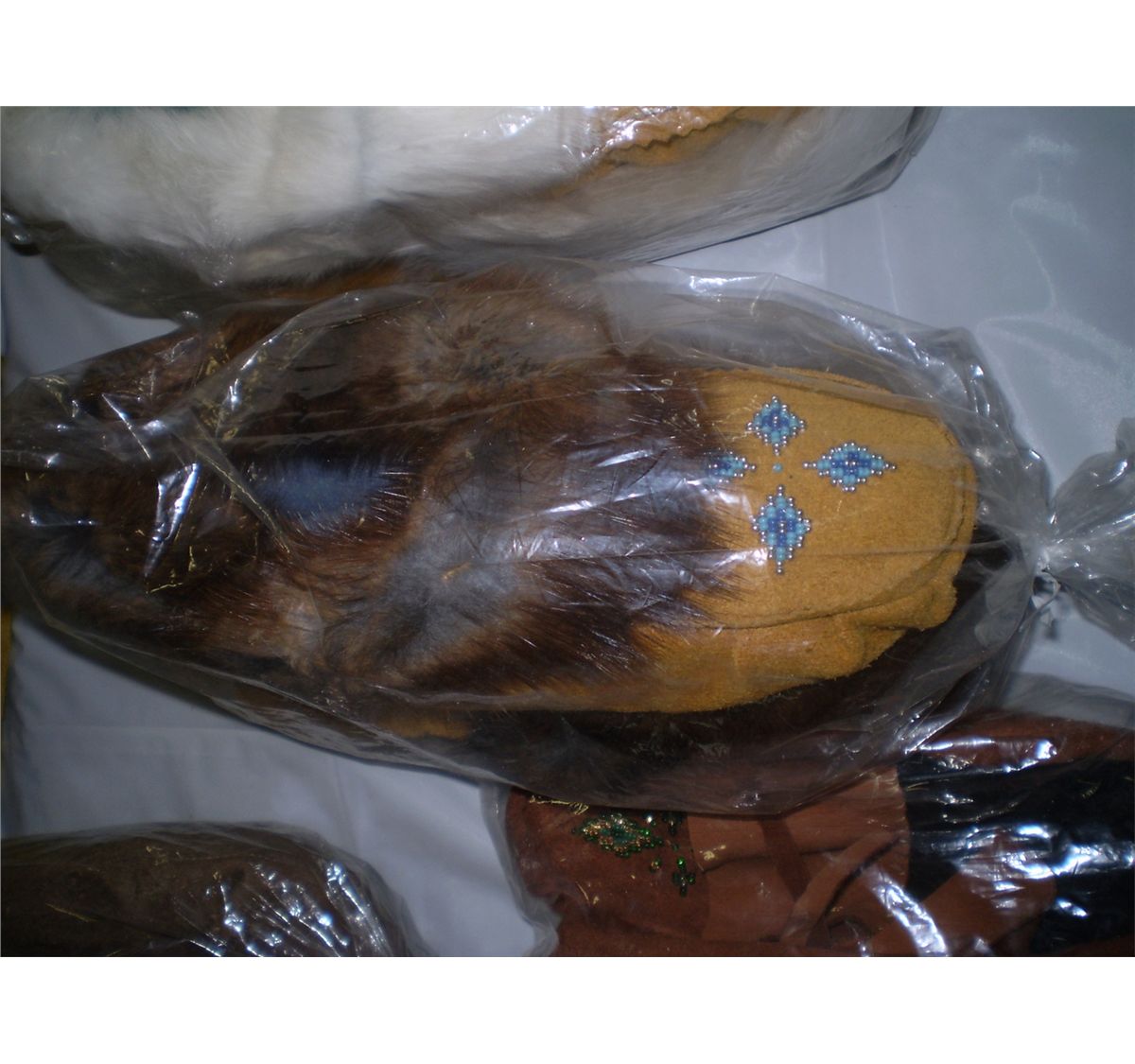 hand made moccasins with real rabbit fur size 8