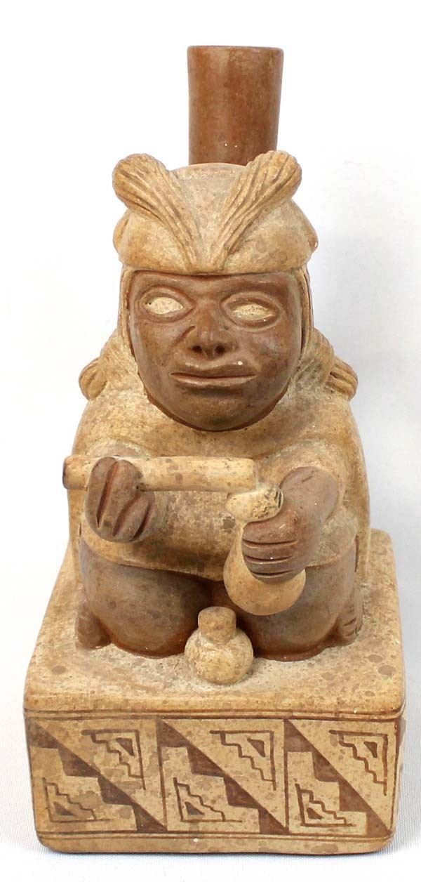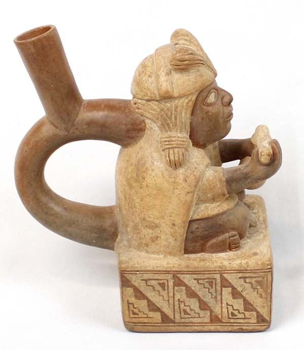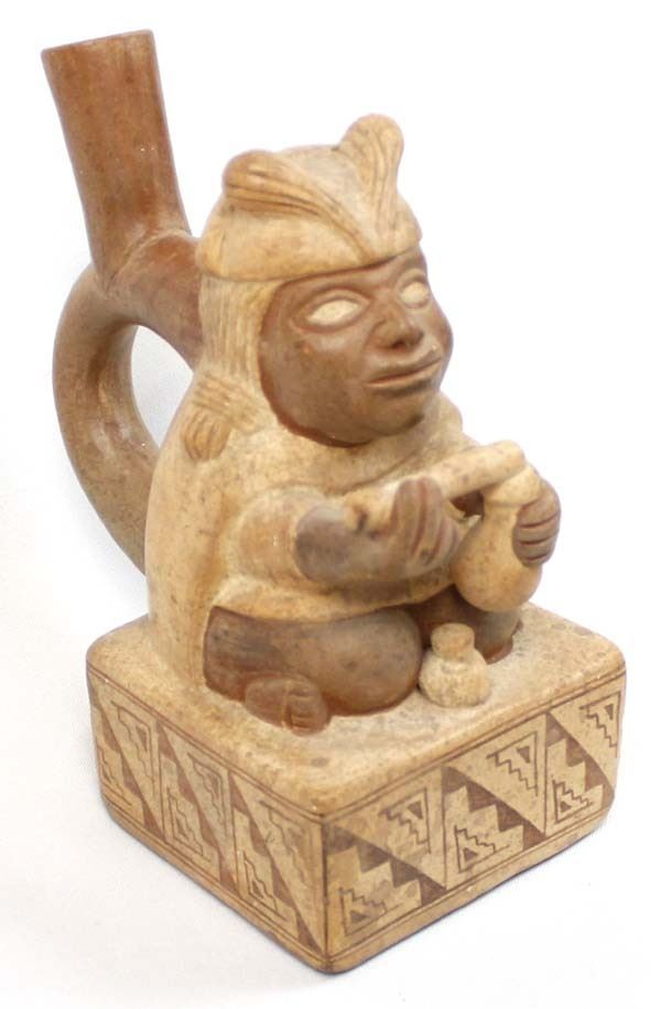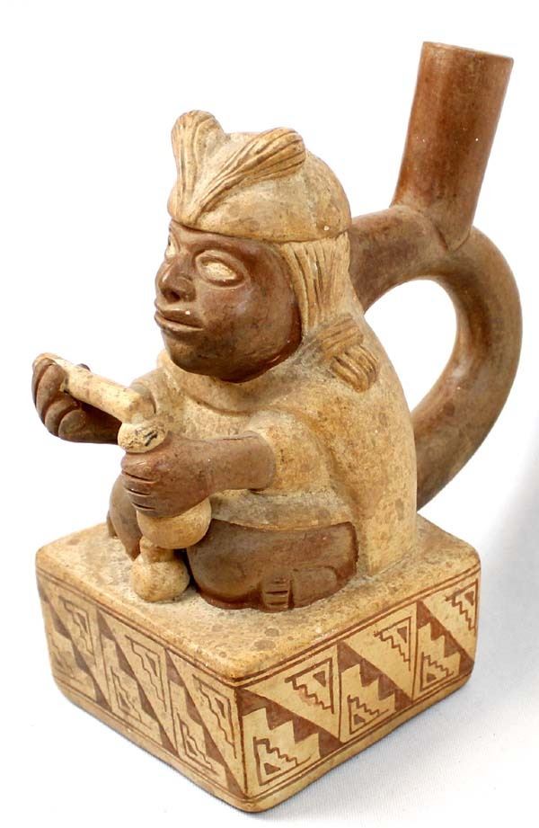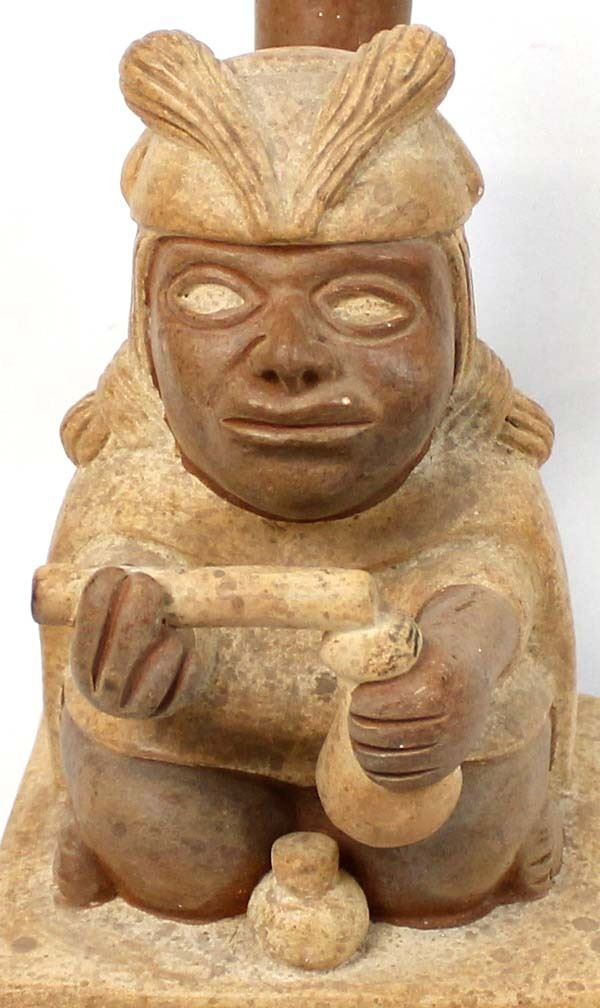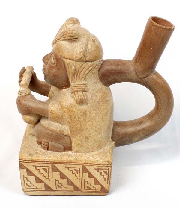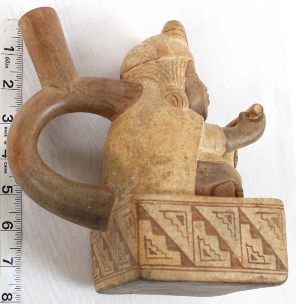 Moche' Culture Stirrup Pottery Replica, measures 7'' x 7.5'' 4'', possibly depicting medicine man