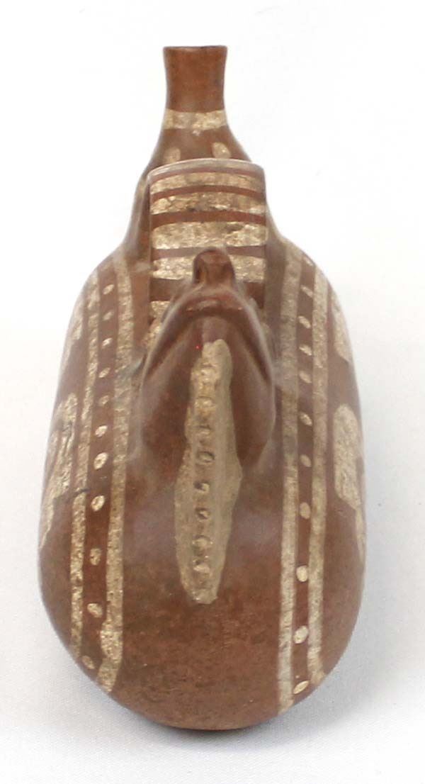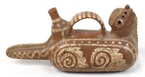 Moche' Culture Stirrup Pottery Replica, measures 5'' x 9'' x 3'', depicts iguana