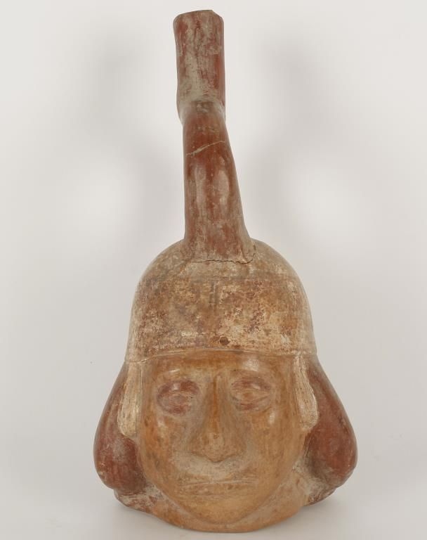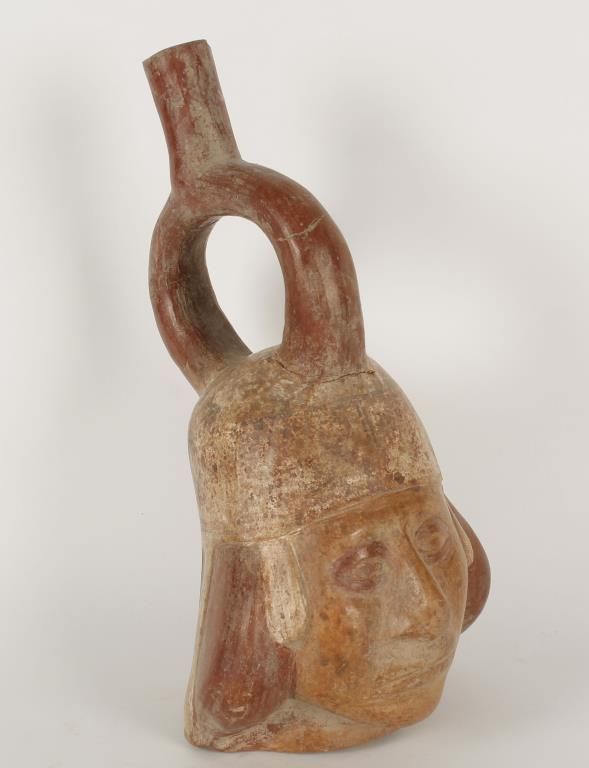 Circa 400-800 A.D. 10" high x 5-1/4" diameter. In aged condition with some damage, handle cracked and repaired in 3 places.