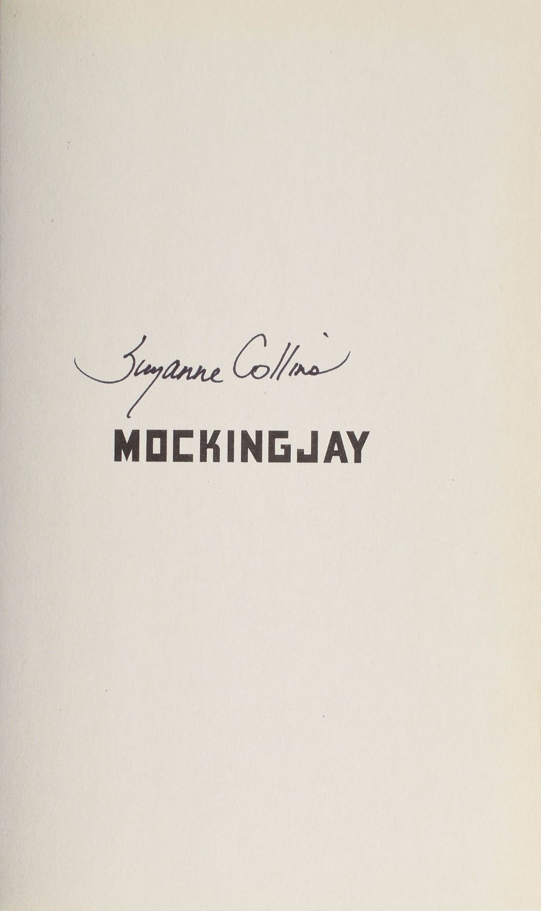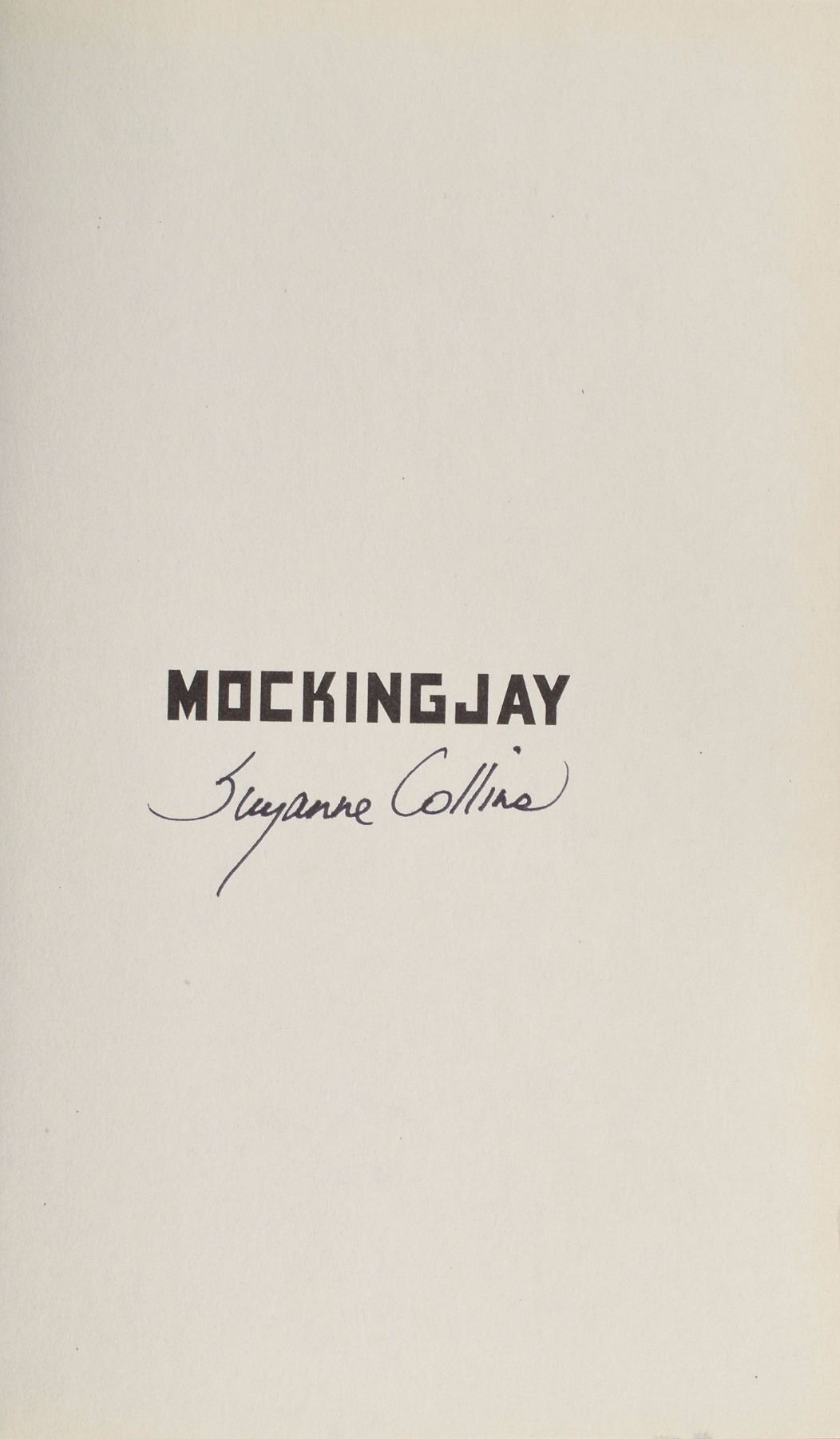 Two signed first editions of Mockingjay, both published by New York's Scholastic Press in 2010, hardcover with dust jacket, 5.75 x 8.5, 390 pages. Both are signed on the half-title page in black ink by Collins. In overall fine condition.