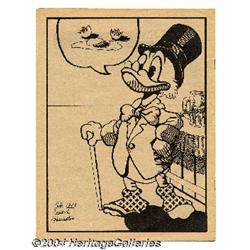 <B>Mockobcknn (Moscow Duck Review) #nn (Ike Horn, 1974) Condition: VF/NM.</B></I> Published in 1975 on newsprint, this oddball Underground rarely shows up in even the biggest collections. Apparently, the title (which loosely translates to "Moscow Duck Review") was inspired by a news article about the Hornocker family's pet duck who was abducted in Moscow, Idaho. The print run was a mere 1,500. It's a rare bird, indeed! <BR><BR><B>Important notice:</B> Heritage usually auctions material at the rate of 200-250 lots per hour. On some occasions eBay Live bid software or the Internet may not be able to keep up with the pace of the auction. We recommend placing a realistic absentee bid now as insurance to avoid disappointment. Occasionally the auctioneer may eliminate or reject an eBay Live bid, and the auctioneer may also reopen a lot after the close of the eBay live bidding (usually because we missed an audience bid), and may reject your bid even if it shows you as the winning bidder. By bidding via eBay Live, you agree that Heritage may award the lot to another bidder at its sole discretion under the circumstances described above or any other reasonable circumstances. Since eBay bids are not shown to us until we open the lot on the floor, we treat those bids just like floor bids. In most cases the floor responds before the eBay bid is presented to us, due to Internet lag time, so for consistency we have made it a policy that floor bids are always considered first over tie eBay live bids. Also please note that all Heritage lots purchased through eBay Live carry a 20% Buyer's Premium. Please make sure you read the Terms and Conditions before you bid.