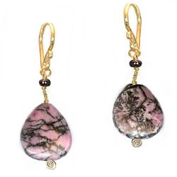 Metal: RoseGoldBlack onyx and rhodonite, about 1-1/2".Available in either 14K gold-filled, rose gold-filled, or sterling silver. All jewelry is entirely handmade in our studio in New York.