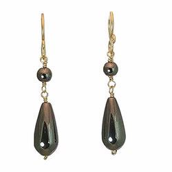Metal: RoseGold Hematite, about 1-1/4". Available in either 14K gold-filled, rose gold-filled, or sterling silver. All jewelry is entirely handmade in our studio in New York.