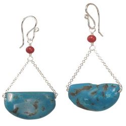 Metal: RoseGoldRed coral with turquoise half moon, about 1-1/4".Available in either 14K gold-filled, rose gold-filled, or sterling silver. All jewelry is entirely handmade in our studio in New York.