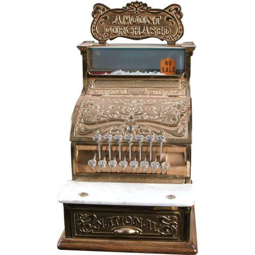 Model 130 National Cash Register restored all bronze art Nuveau design with top sign