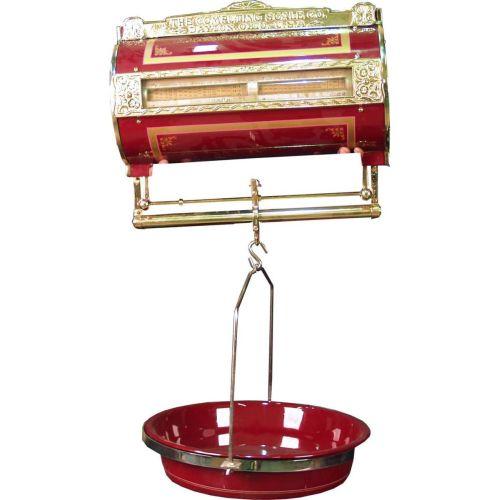 Model 144 Dayton Hanging Barrel Scale with Pan in Brass & Maroon
