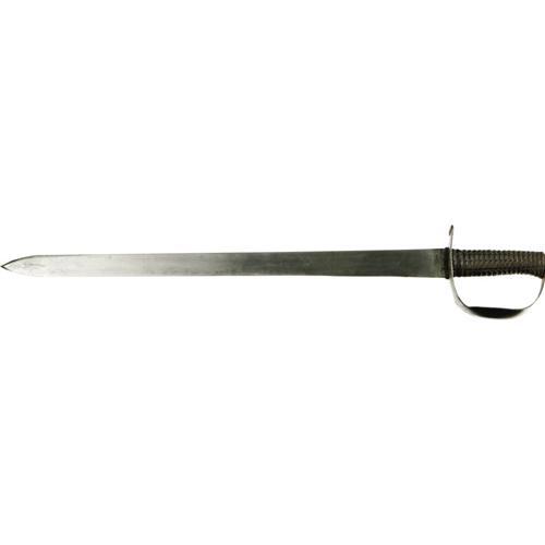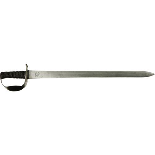 <B>Model 1804 British Naval Cutlass,</B></I> 27" length overall with 22" straight blade, cast iron grip resembling checkered wood, steel guard with rudimentary quillon, large script "GR" cipher, and crown-over-3 proof-mark stamped on ricasso. The blade remains smooth, bright and sharp. The grip is deeply toned, and the hilt has light overall pitting. Fine condition. This classic naval cutlass is of Napoleonic Wars vintage and should capture the imagination of Horatio Hornblower and Jack Aubrey fans.<BR><BR><b>Shipping:</b> Large Collectibles (<a target="_blank" href="http://www.heritageauctions.com/common/shipping.php">view shipping information</a>)
