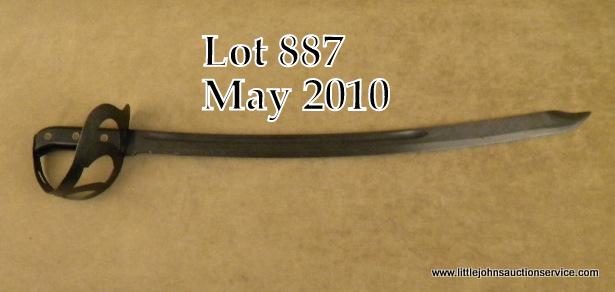 Model 1817 Naval Cutlass approx. 30” overall with a 25” blade, blue finish and hardwood grip secured by three brass rivets. This cutlass is in overall excellent condition showing the majority of its original blue finish on the blade, and hand guard; wood grips are also excellent. A very fine example of this model. Est.: $100-$200.