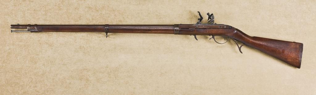 Model 1819 Hall breech loading flintlock rifle, .52 cal., 33” barrel, brown finish, wood stock, breech block dated 1838. This gun is in overall very good to excellent condition showing approx. 90% original brown lacquer on metal surfaces, crisp markings and action, sling swivels present, excellent wood with only slight scattered nicks and mars from storage; steel ramrod and butt plate retained. Est.: $3,000-$6,000.
