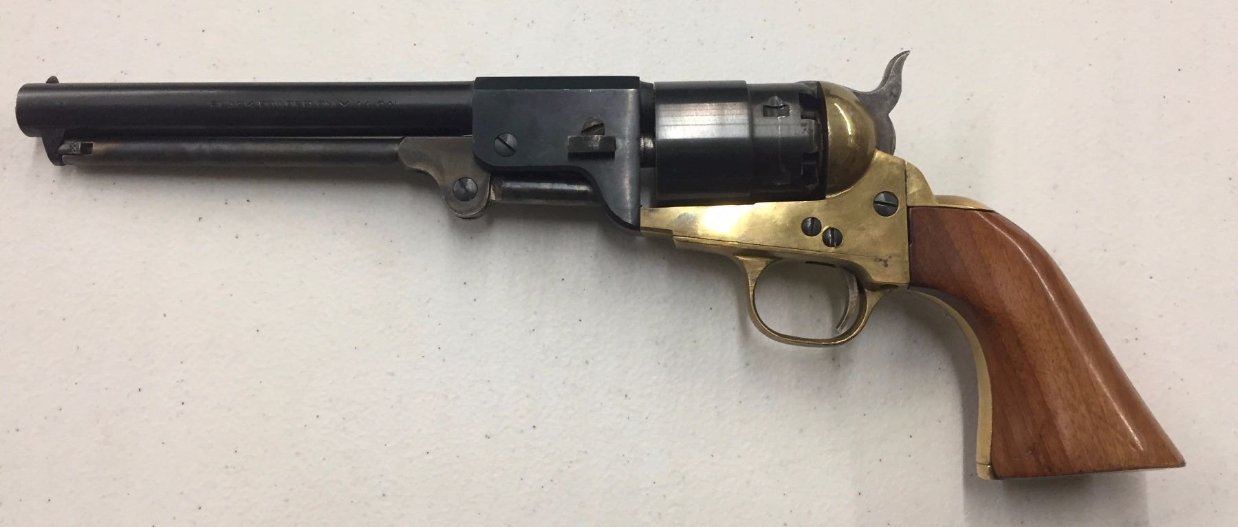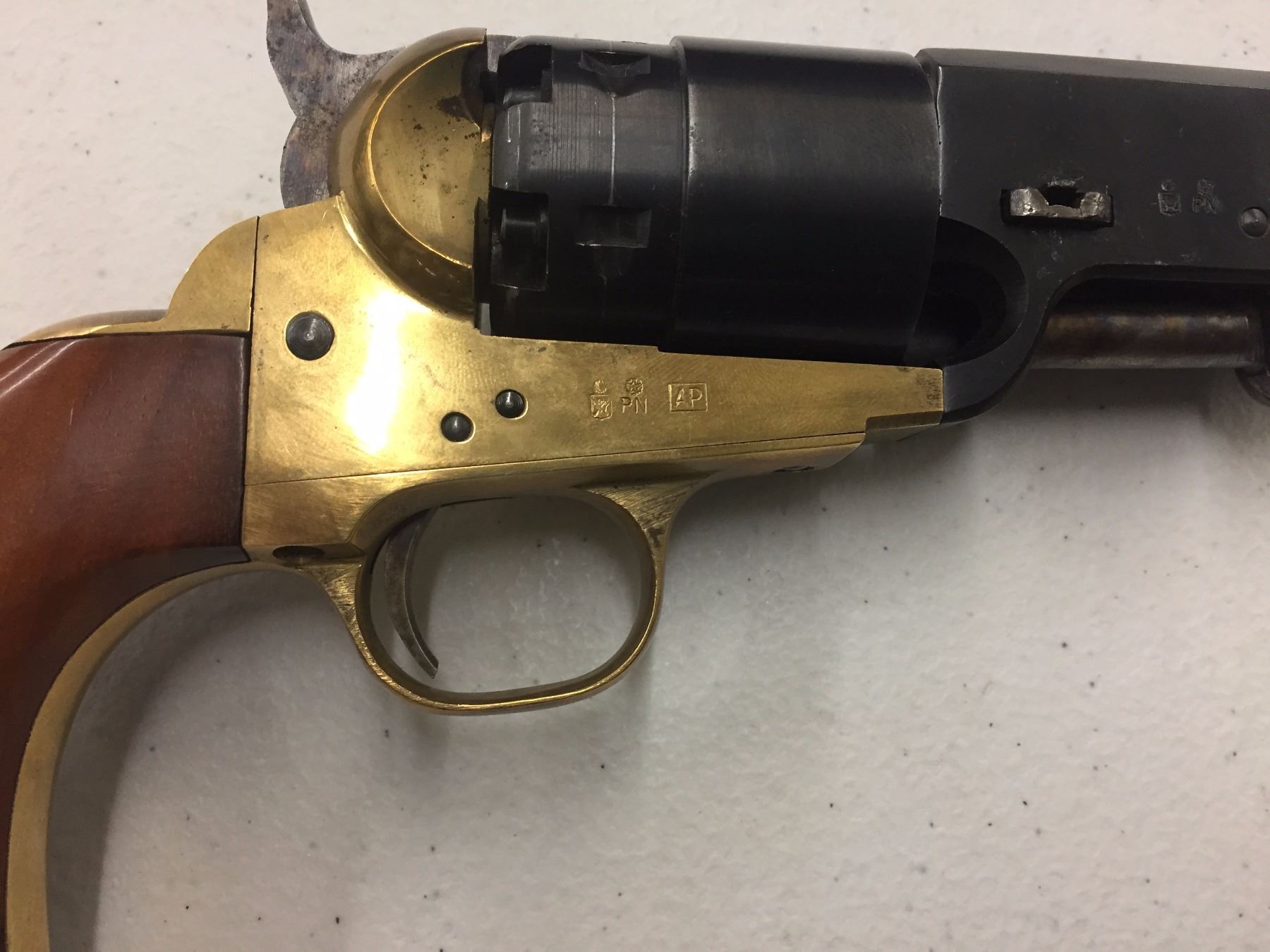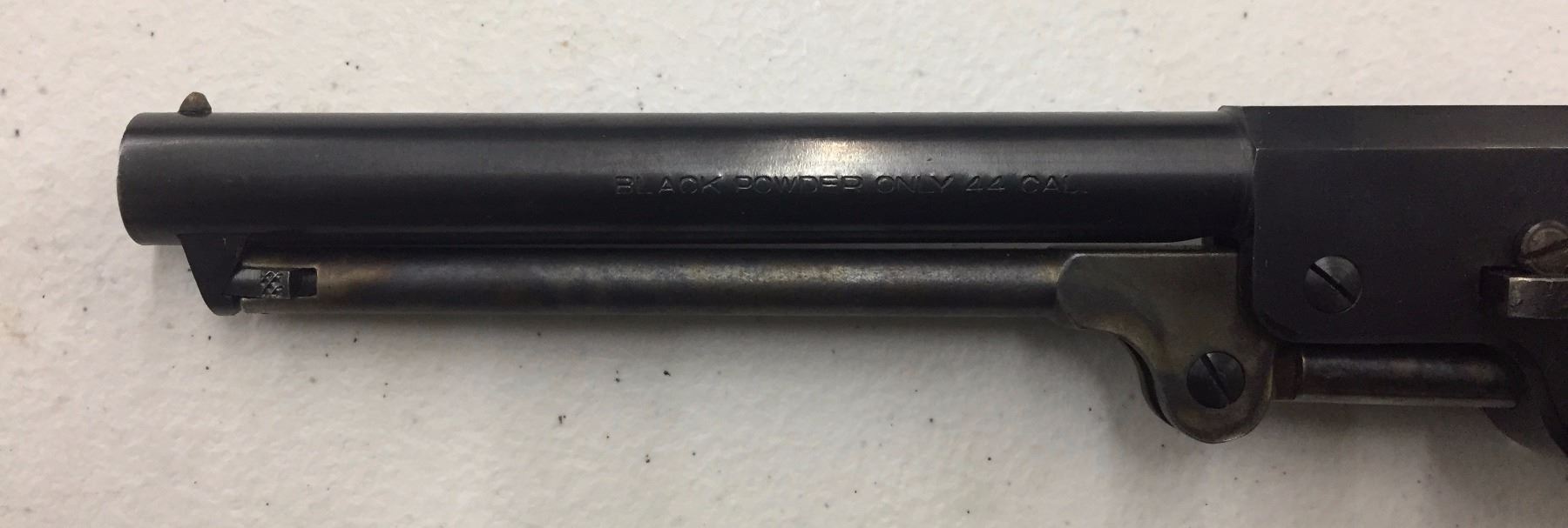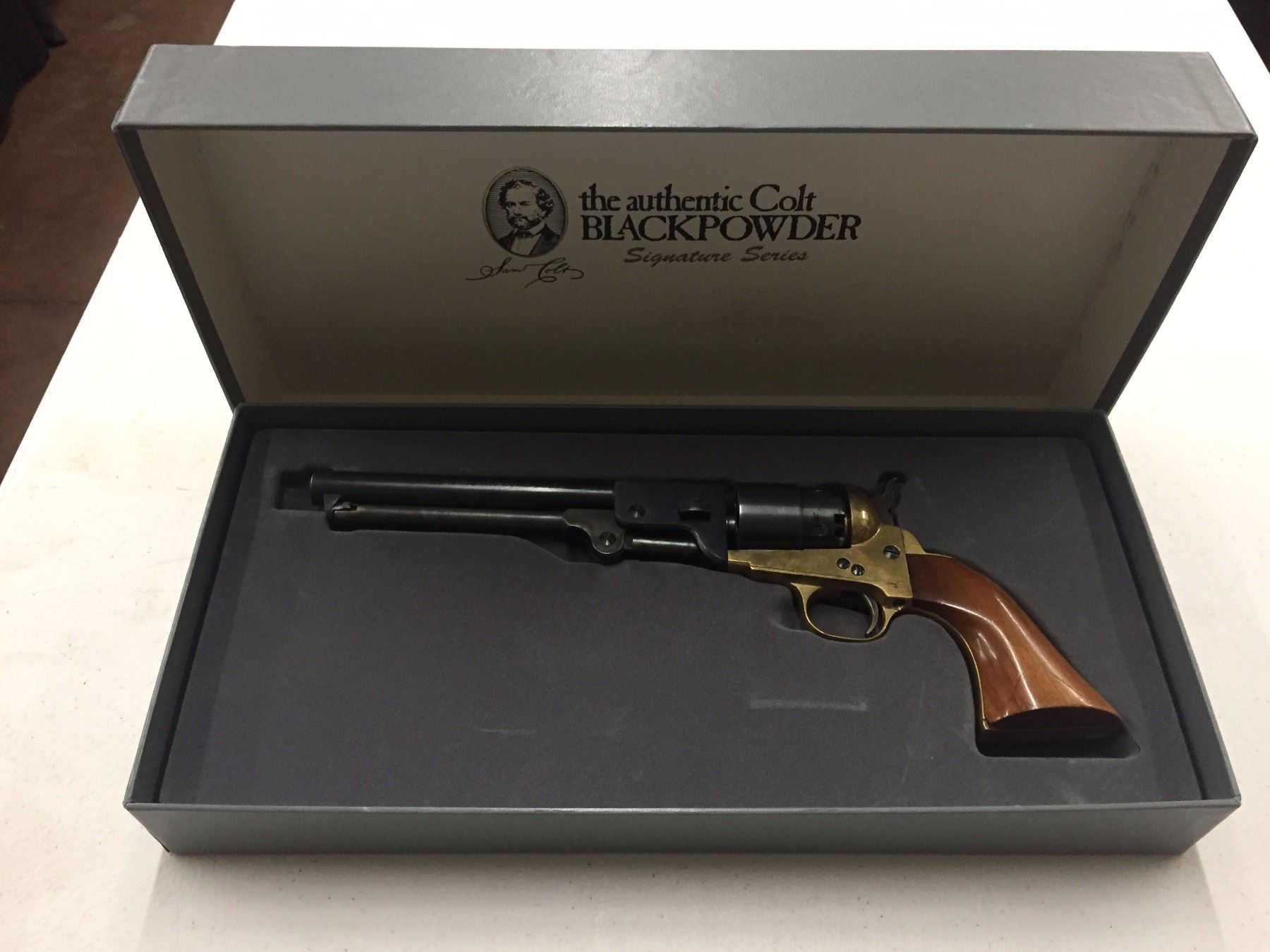 Maker: Top of barrel says, Navy Arms Co. Ridgefield NJ. Approx. Age: Fairly modern. Size: .44 cal. 7” barrel and is 13” overall. Condition: Good, shows signs of light use only. Additional Info: A Navy Arms Co. black powder replica with a Colt Signature Series box which is not its original box. No FFL paperwork required on this black powder replica pistol. We will only ship this item to the United States and only where it is legal to do so. Please know your local/state laws before buying. Please look closely at the pictures - they are an important part of our description. Shipping: There will be a $10 handling / packaging fee for shipping this lot. The actual cost of postage will be added on top of that.