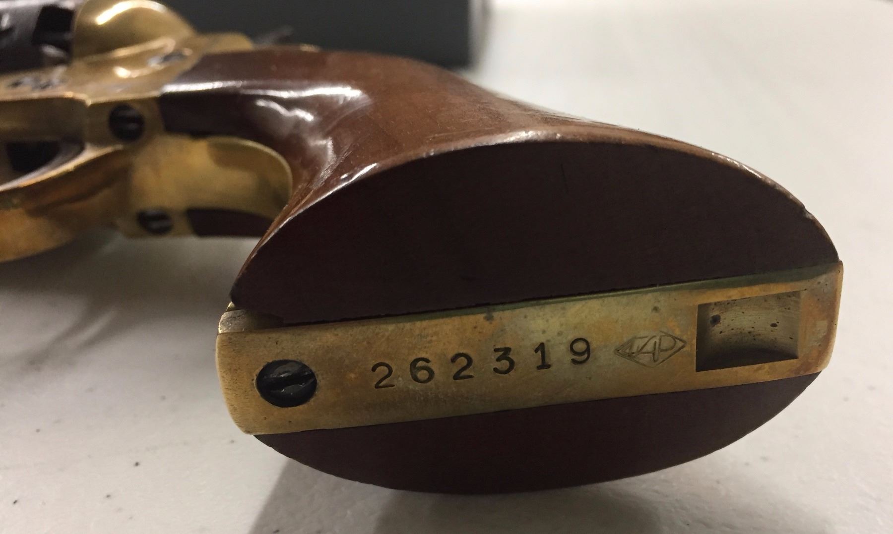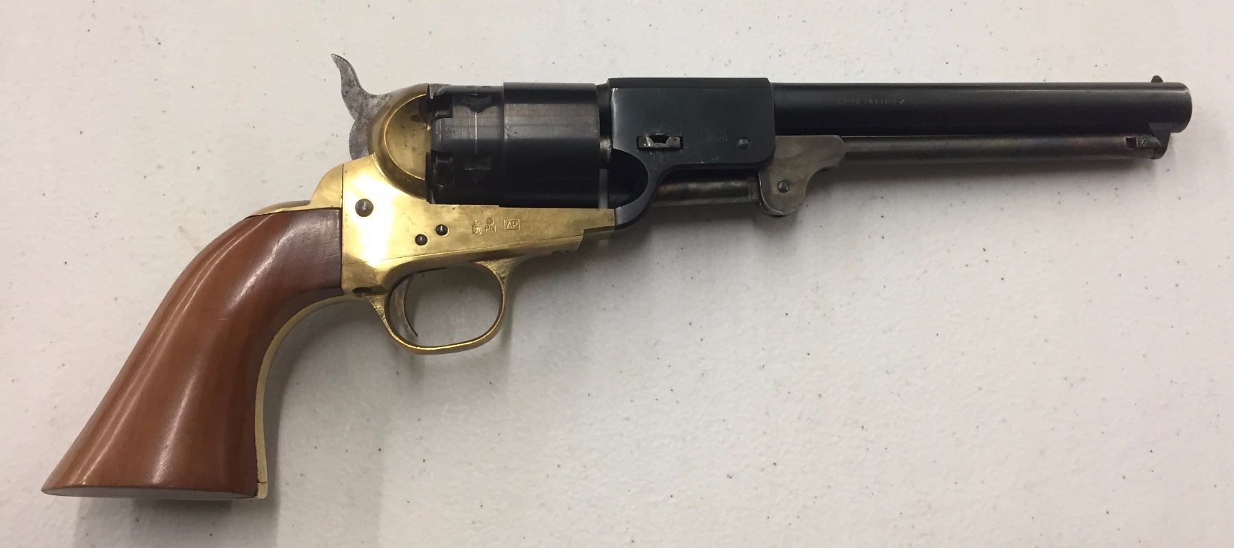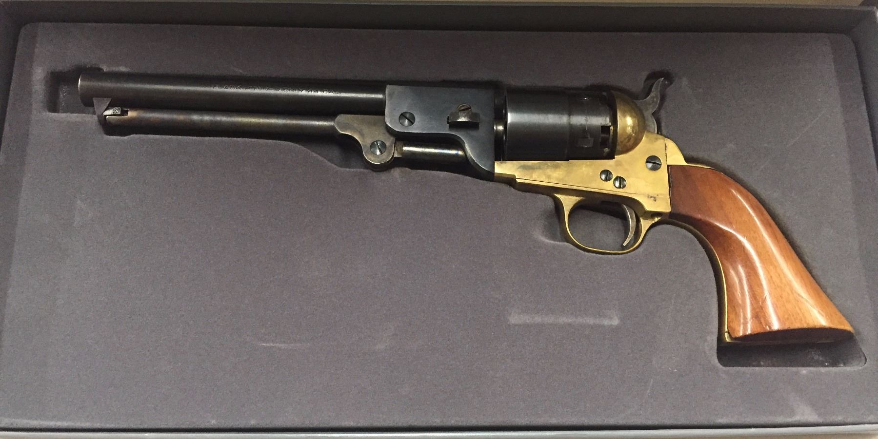 Maker: Top of barrel says, Navy Arms Co. Ridgefield NJ. Approx. Age: Fairly modern. Size: .44 cal. 7” barrel and is 13” overall. Condition: Good, shows signs of light use only. Additional Info: A Navy Arms Co. black powder replica with a Colt Signature Series box which is not its original box. No FFL paperwork required on this black powder replica pistol. We will only ship this item to the United States and only where it is legal to do so. Please know your local/state laws before buying. Please look closely at the pictures - they are an important part of our description. Shipping: There will be a $10 handling / packaging fee for shipping this lot. The actual cost of postage will be added on top of that.