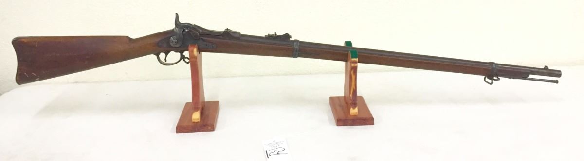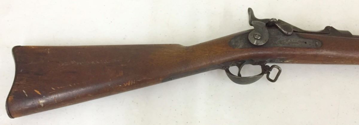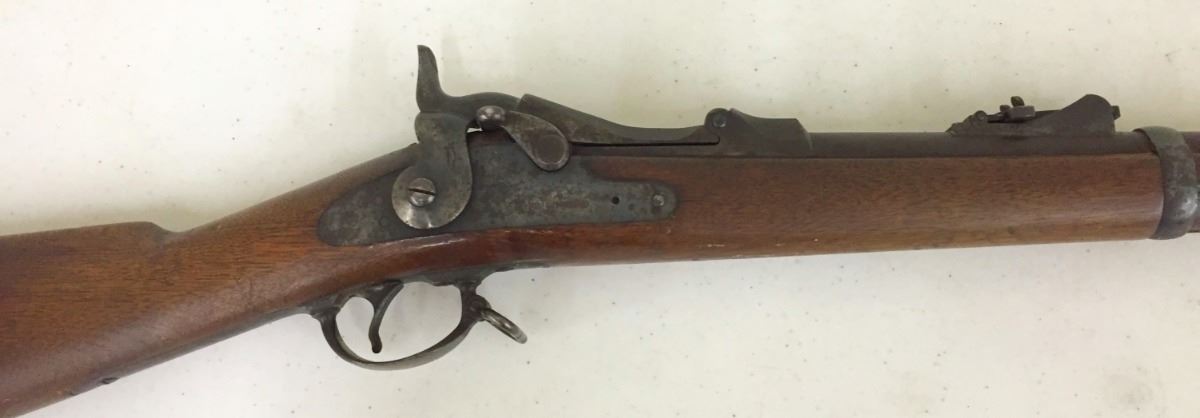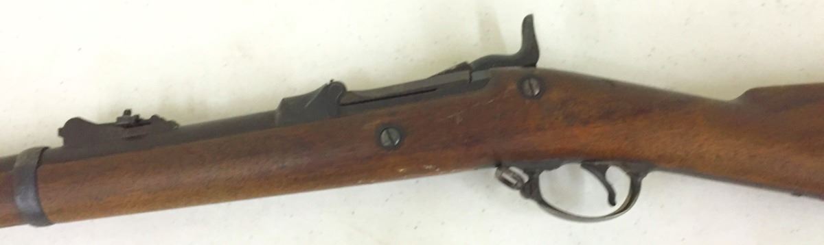 .45-70 caliber. Appears to be all original including sites, stock and cleaning rod. Has US stamped in the butt plate. Everything seems to be tight and in good working order with normal (but not excessive) wear and tear. A good honest rifle. An antique gun, so no FFL paperwork necessary. However, know your local laws, we will not ship to areas where it is restricted. Continental US shipping only. Please look closely at pics - they are an important part of our description. Shipping: There will be a $10 handling / packaging fee for shipping this lot. The actual cost of postage will be added on top of that.