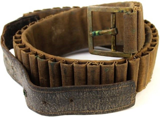 A rare US Cavalry fine canvas style belt with loops for 45-70 cartridges. The canvas is nice, solid and serviceable, with leather tongue and original buckle.