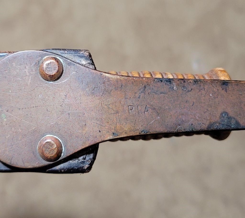 Made by Springfield. Original leather scabbard. Frog is marked RIA. Excellent example
