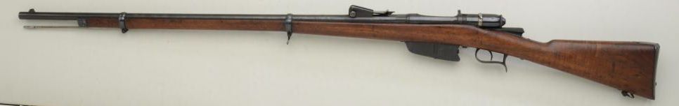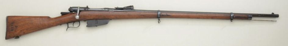 Model 1885 Torino marked Italian military rifle, 6.5 cal., serial #CI9963. The rifle retains 95-98% old arsenal re-blued finish, with good to very good wood stocks, good markings, good action, good bore, cleaningrod included. Est.: $100-$200