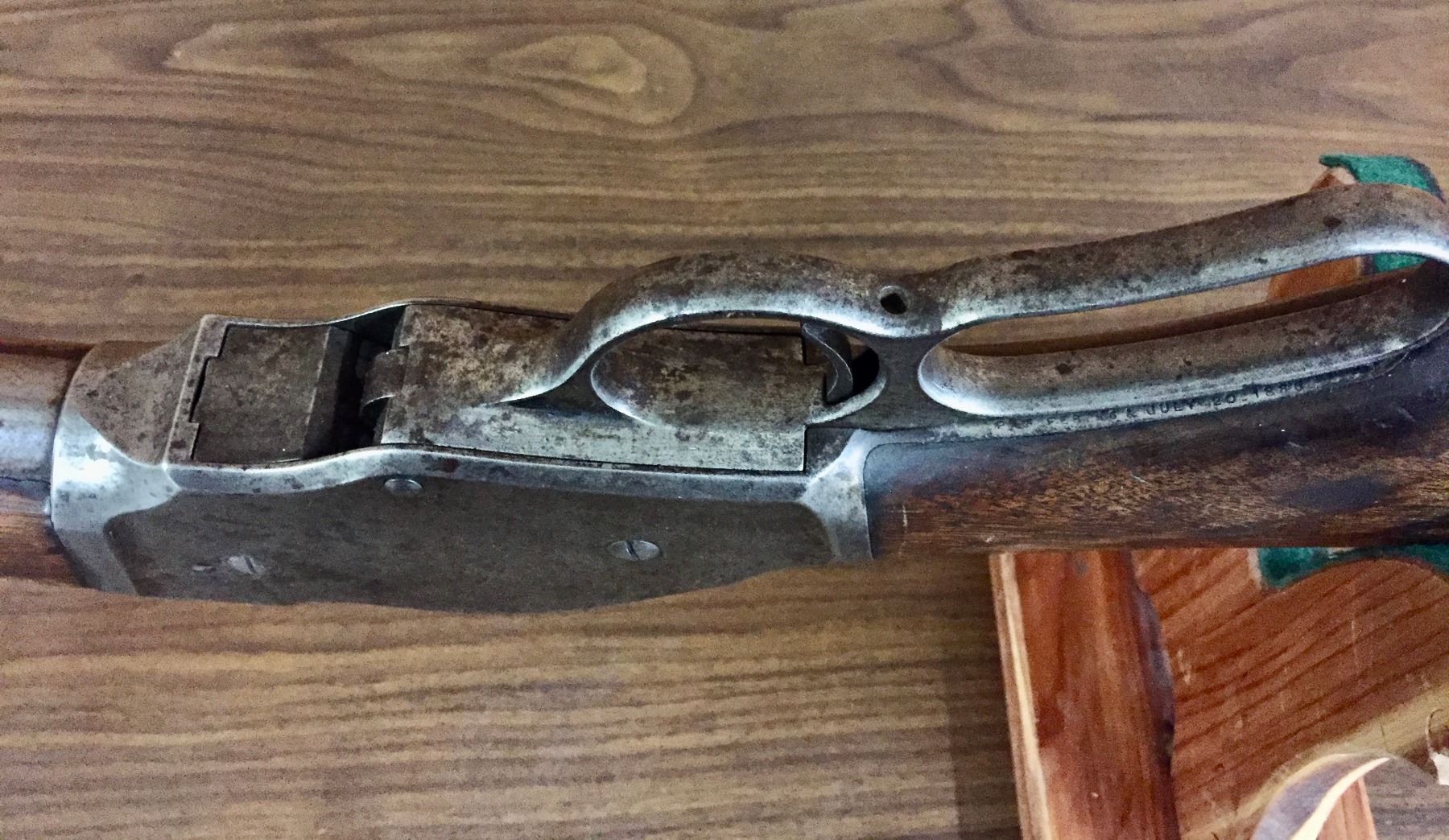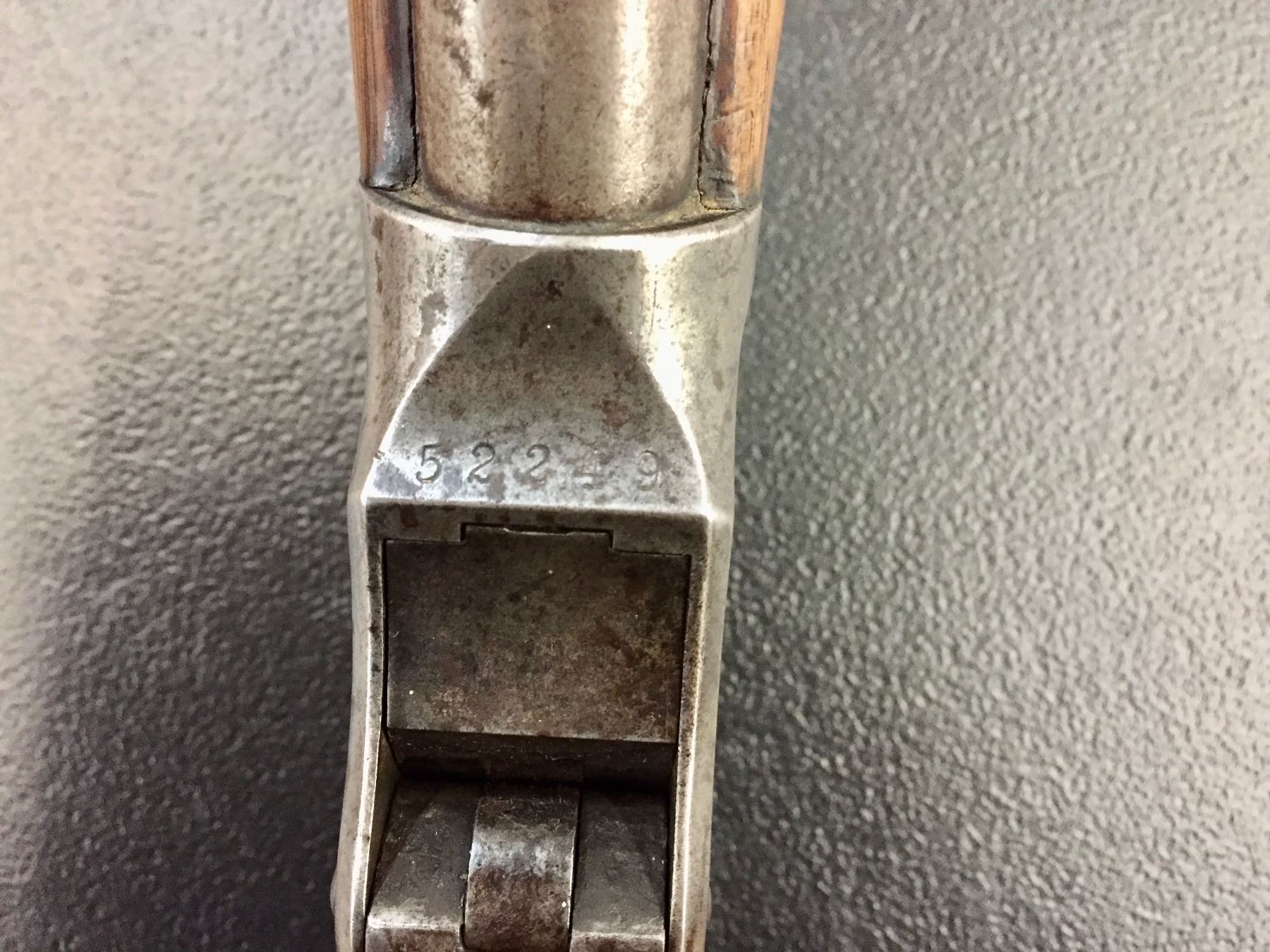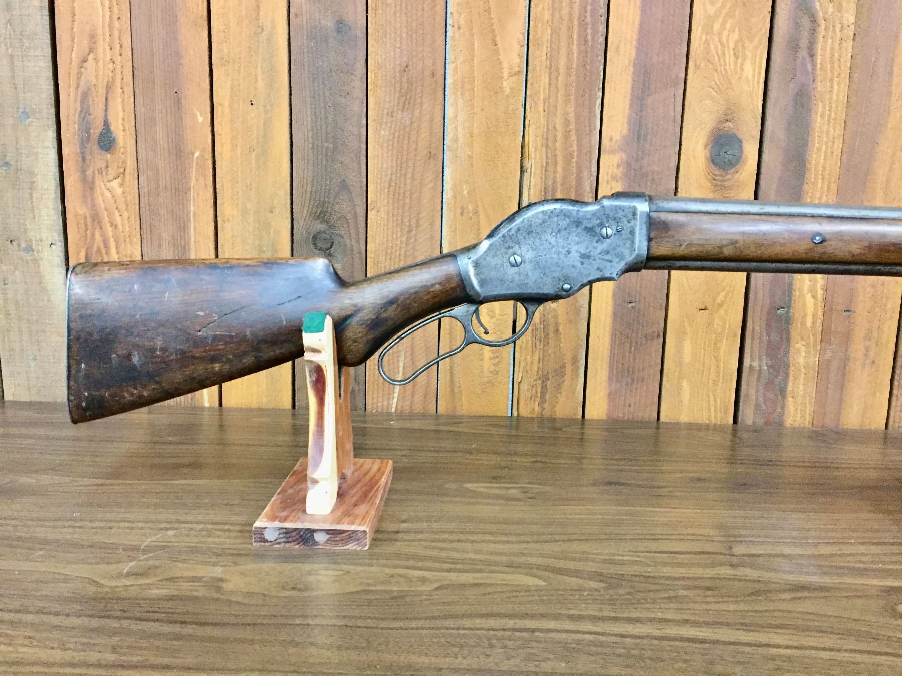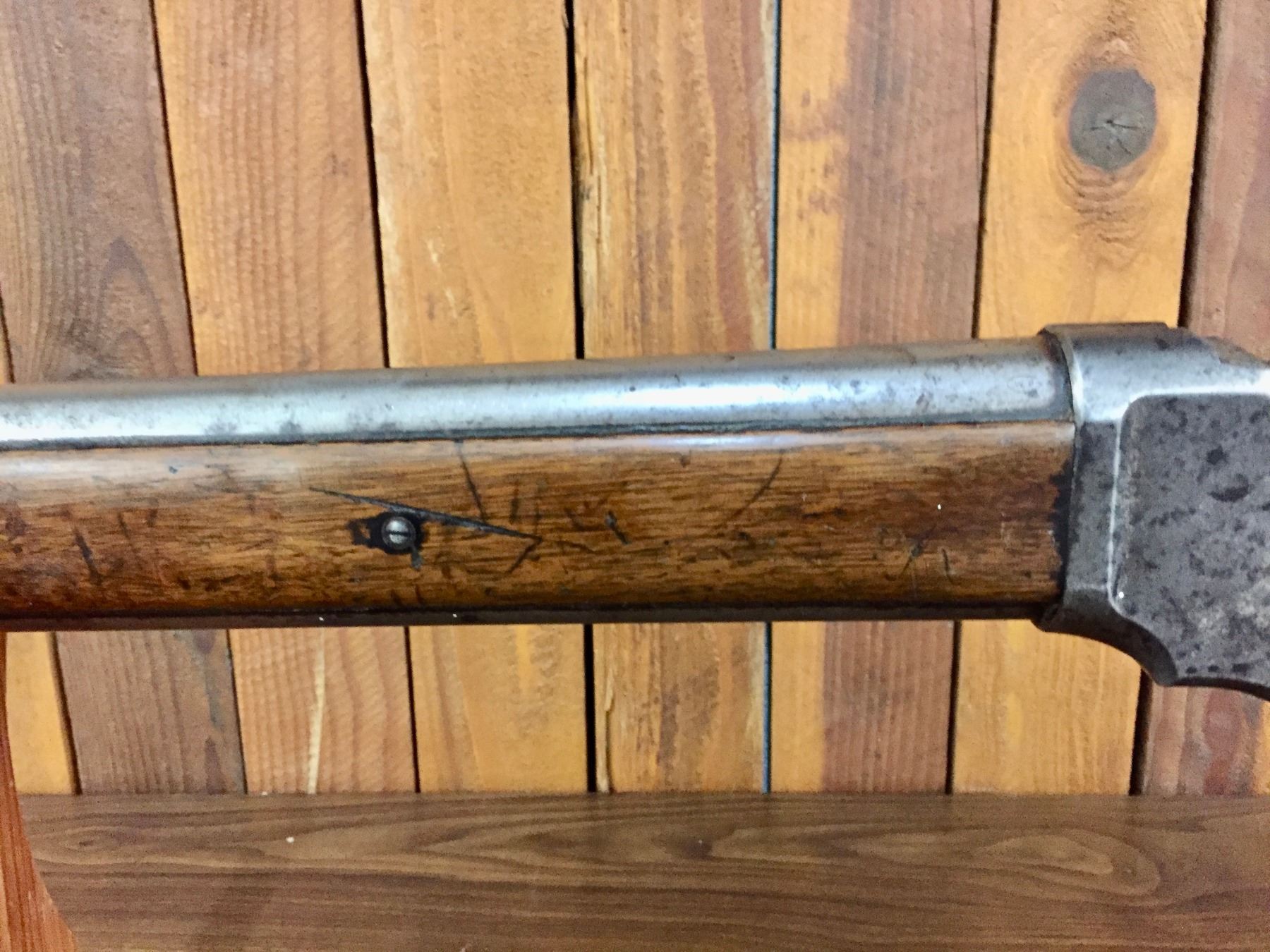 Size: Barrel measures 30" long with an overall length of 47". Condition: Fair for its age, wear expected. Appears to be all original but has very little finish left on the metallic parts.