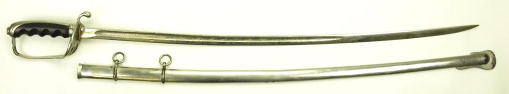 ricasso marked W Stokes Kirk Phila PA. Features etched blade with military motif, includes original scabbard.