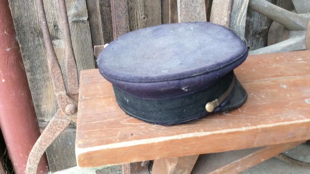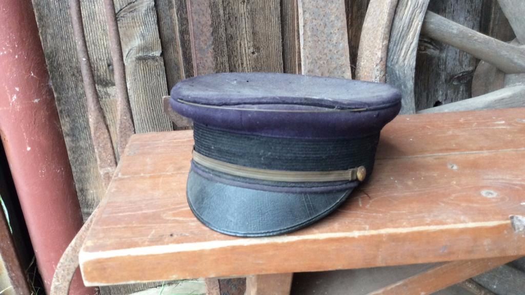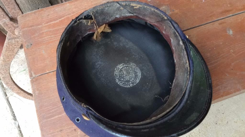 Model 1910 bell crown officers cavalry cap with gold bullion chin strap. It has a few moth bites and an un-sewn top.