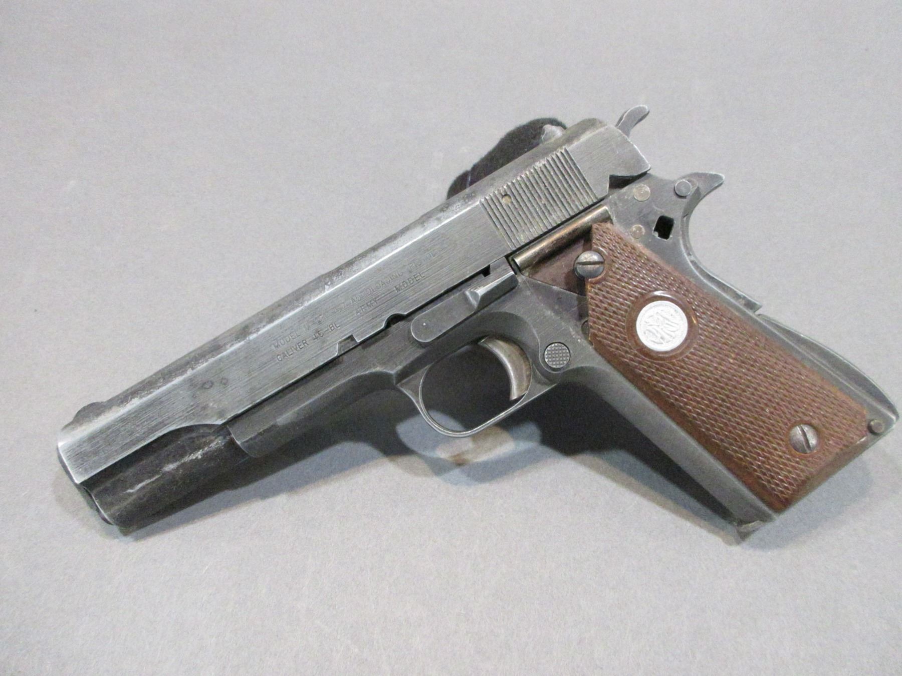 Model 1911 67 Prop Gun- .45 BL- 4.5" Barrel- US Army Training Gun- Broken Grips- Plugged Barrel