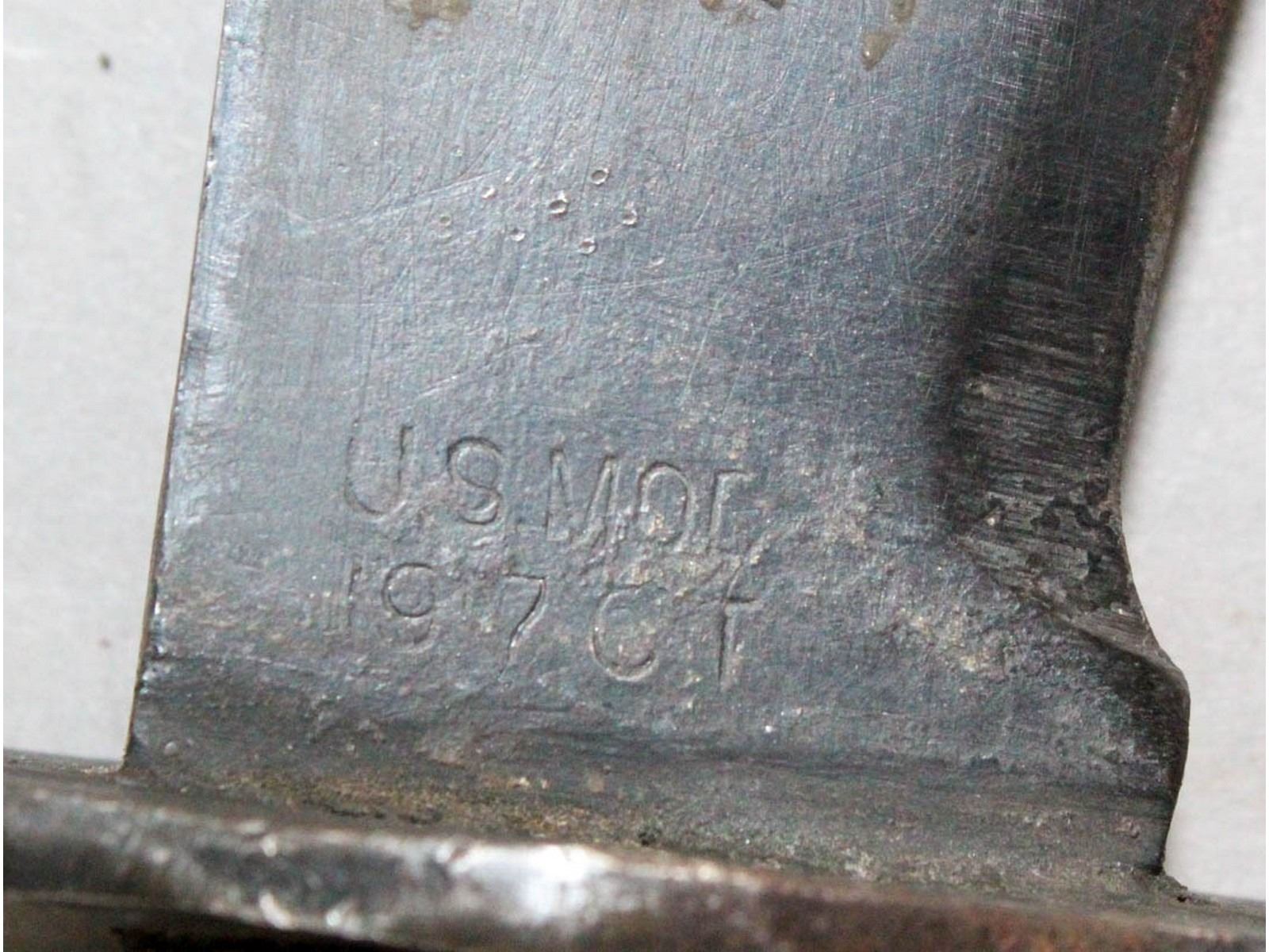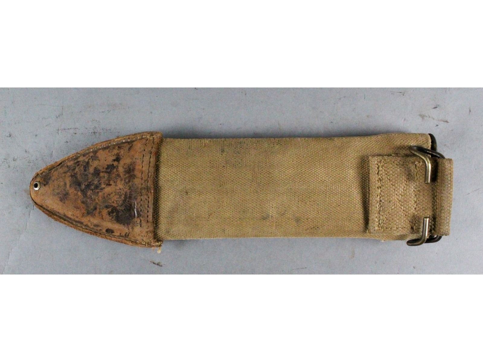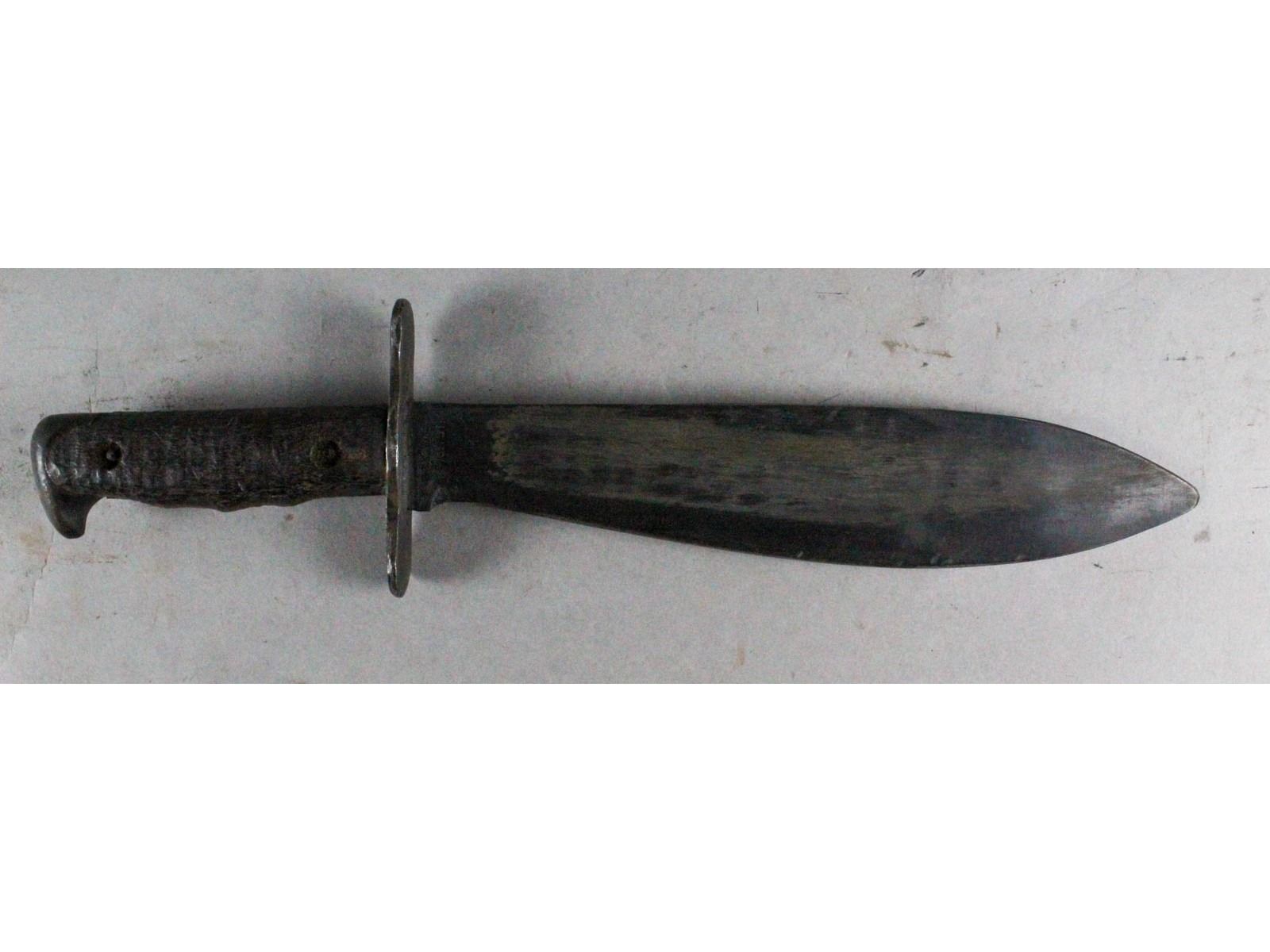 Marked Plumb St. Louis. Dark wood grips & blued blade with only slight wear. good Bauer Bros 1918 scabbard. Leather is good but missing sheen.