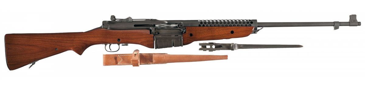 Condition: Very fine as professionally reparkerized, with 99% of the finish remaining. The stock and forend are both current replacements that duplicate the original patterns. The top of the receiver has been drilled and tapped for a scope base in two locations, with all the holes now being professionally plugged. A representative example of a Johnson, Model 1941 rifle.