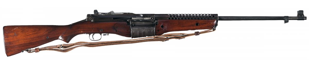 Condition: Very good with 80% of the original WWII parkerized finish overall. The parkerized finish is thinning on the exposed barrel and on the underside of the magazine, both typically areas where these rifles are handled and carried the most. The rear sight still retains the original blue finish but is very dark from age and use. The modified buttstock and forend are both fair condition showing heavy filing off of wood at wrist. The sling is good. Mechanically excellent.