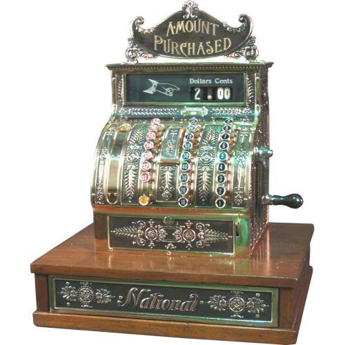 Model 415 NCR National Cash Register Restored to Original Copper Flashed finish on a mahogany base