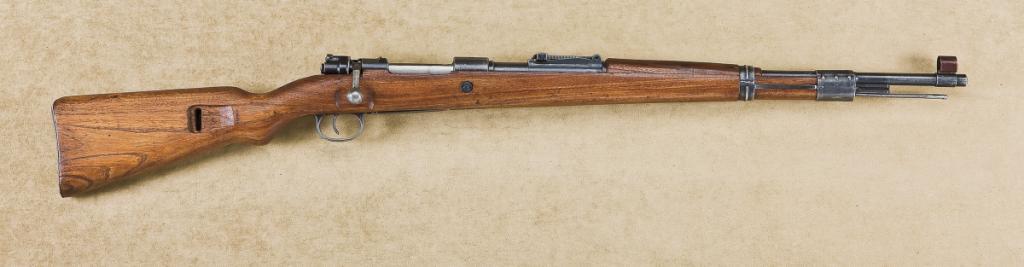 Model 98 Mauser, 8mm caliber, military contract rifle, left side of breech marked “PREDUZECE 44” and showing the mideastern crest on breech, serial number “R5334”. These World War II military rifles were refurbished and sold to Third World governments in the 1950’s and 60’s by arms dealers and Eastern Block arsenals. The condition is very good plus to near fine as reissued. Good action, very good bore, and shows import marks. Est.:$200-$400.
