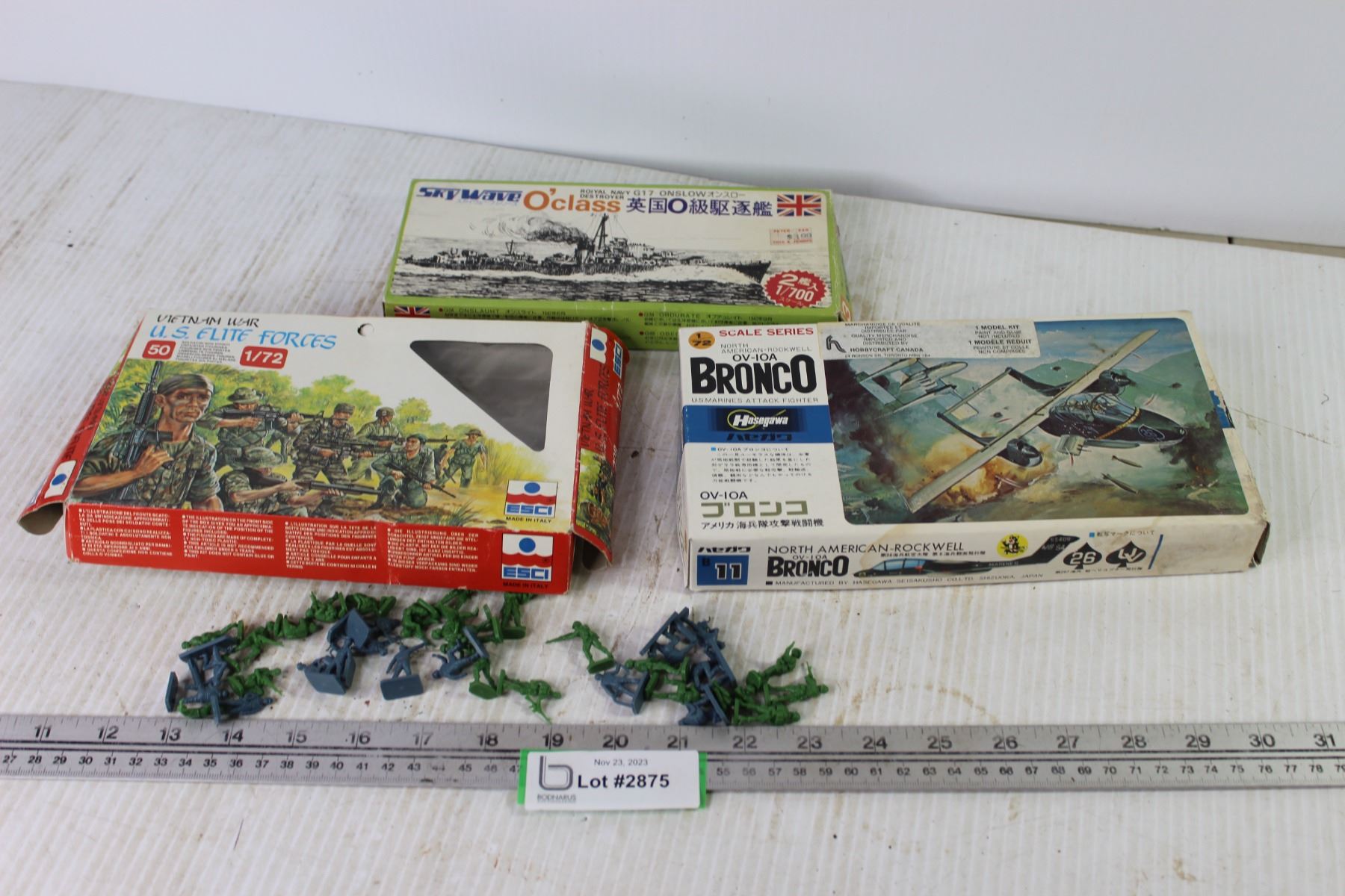Model Airplane Bronco OV-IOA - Skywave Model Royal Destroyer - Box of U.S. Elite Forces Plastic Army Men (NIB)