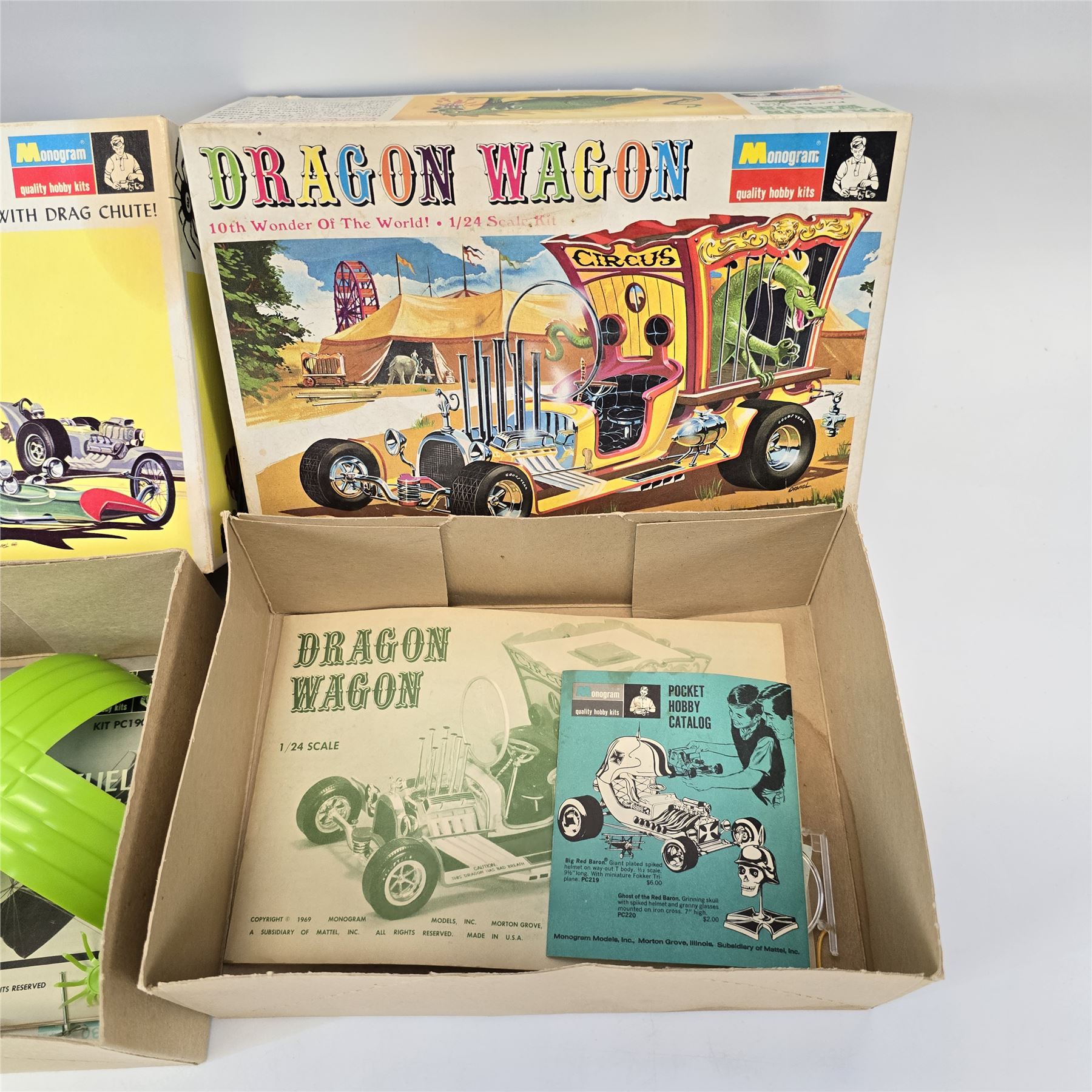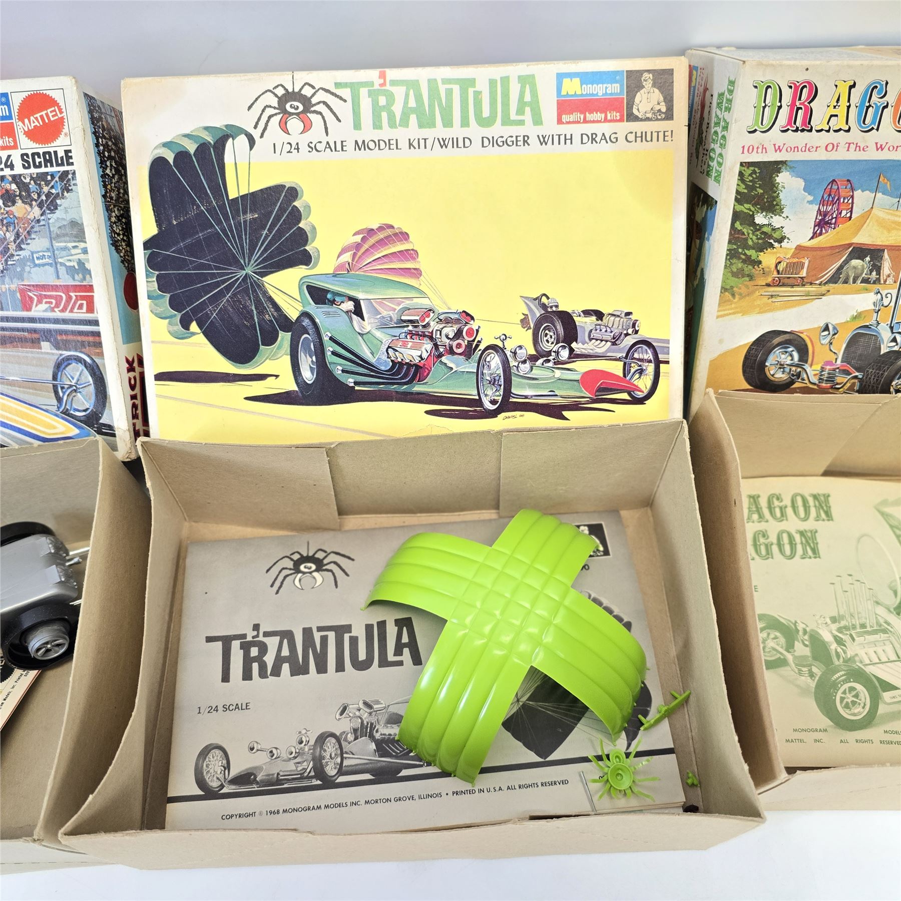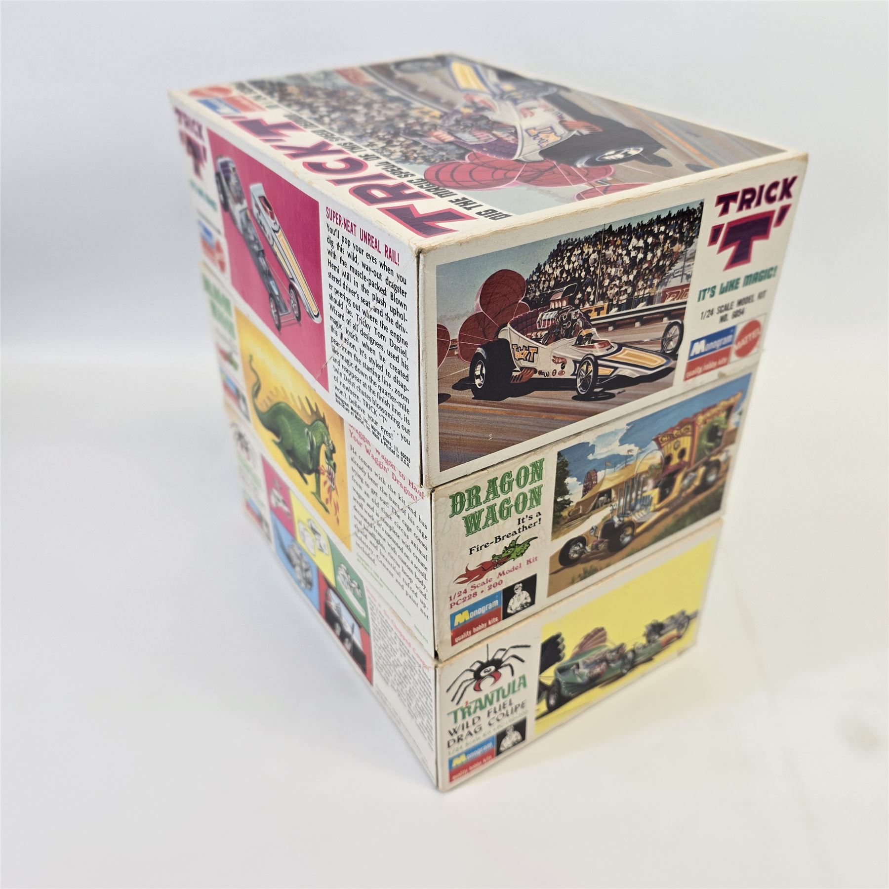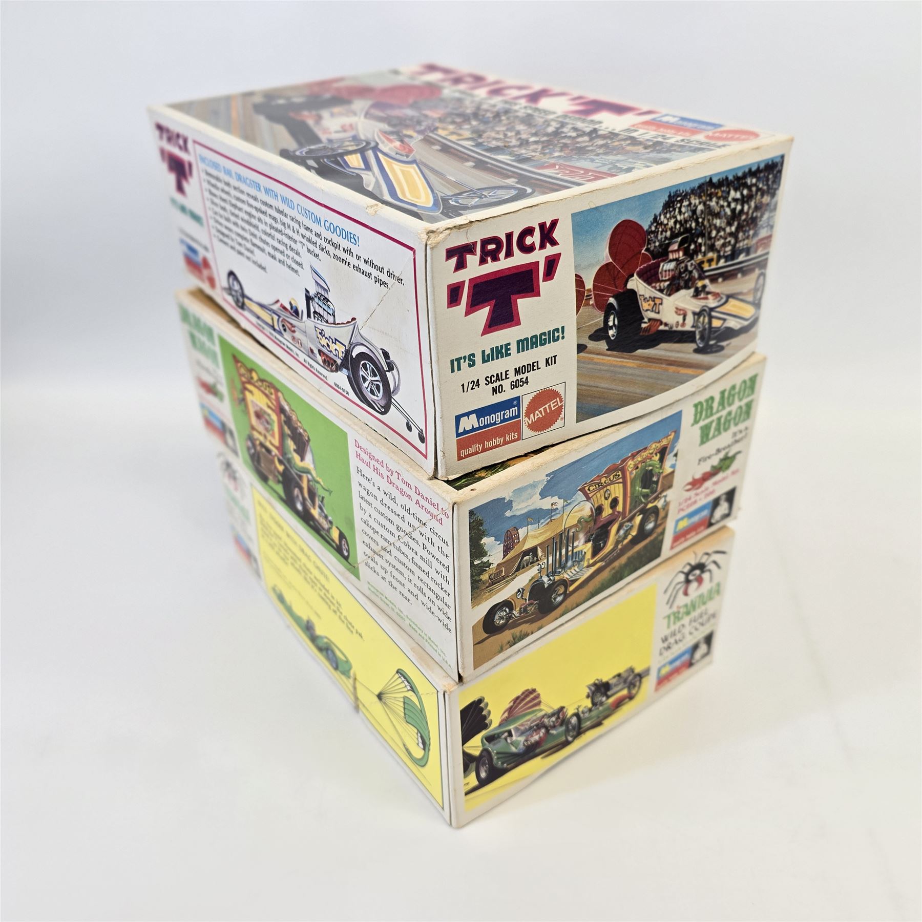 Includes Trick & quot;T& quot;, T'Rantula and Dragon Wagon, Trick & quot;T& quot; is partially assembled not guaranteed to be complete , the other 2 have a few random parts in them but most of the cars are missing