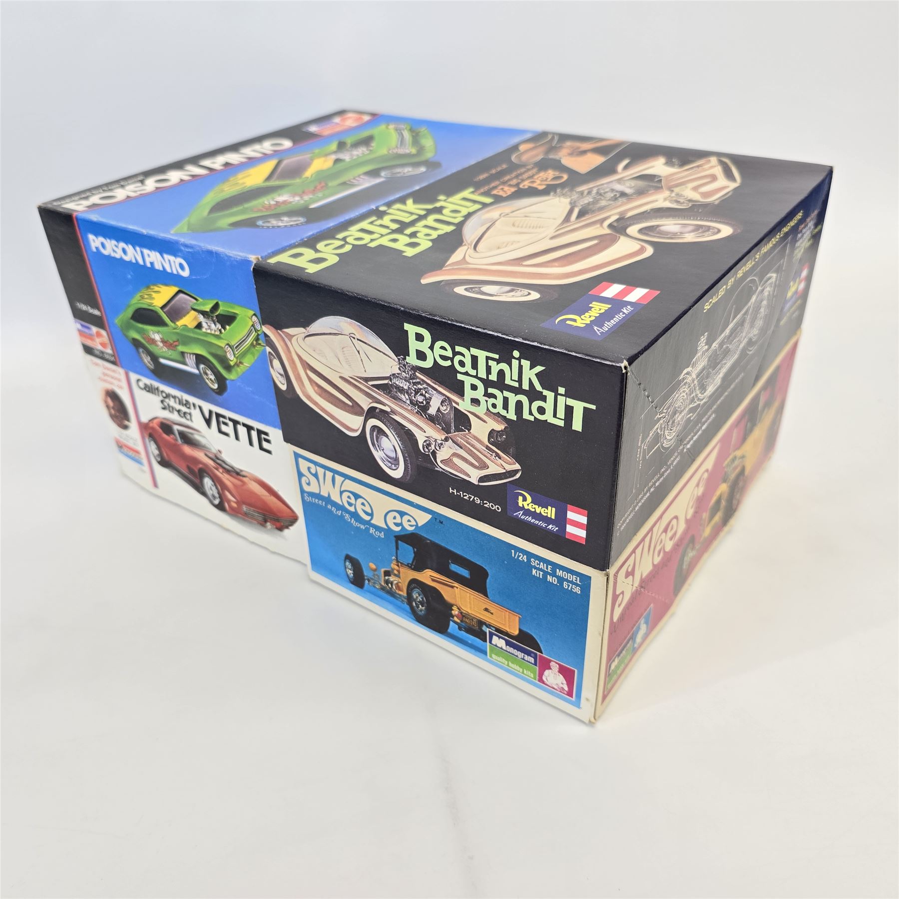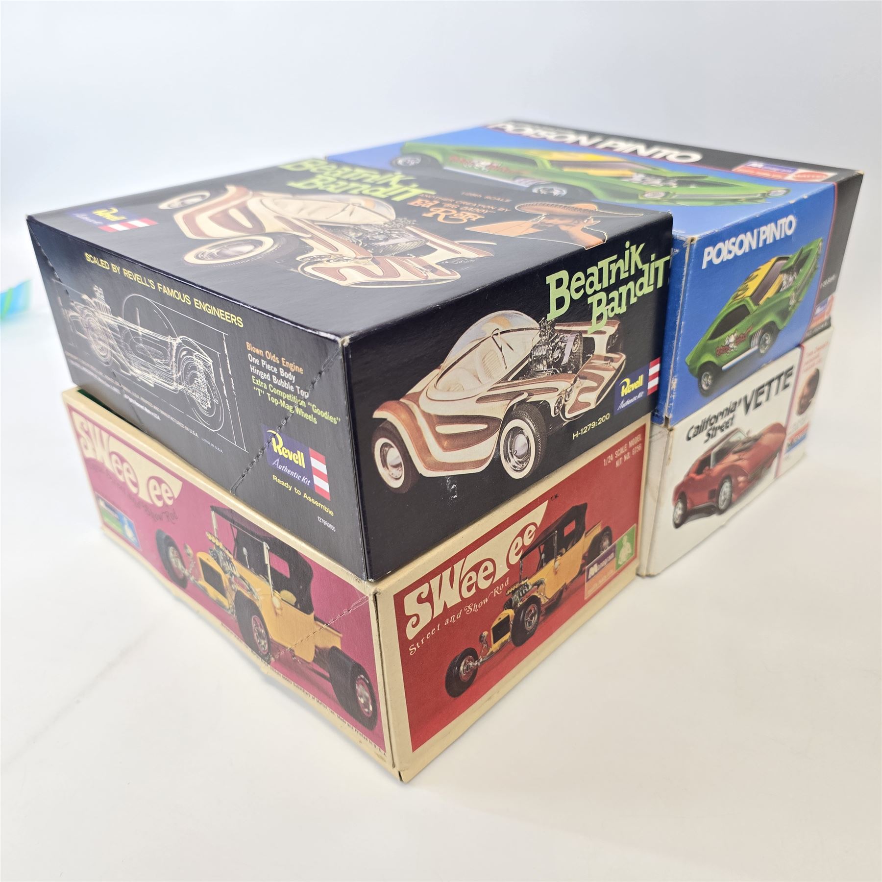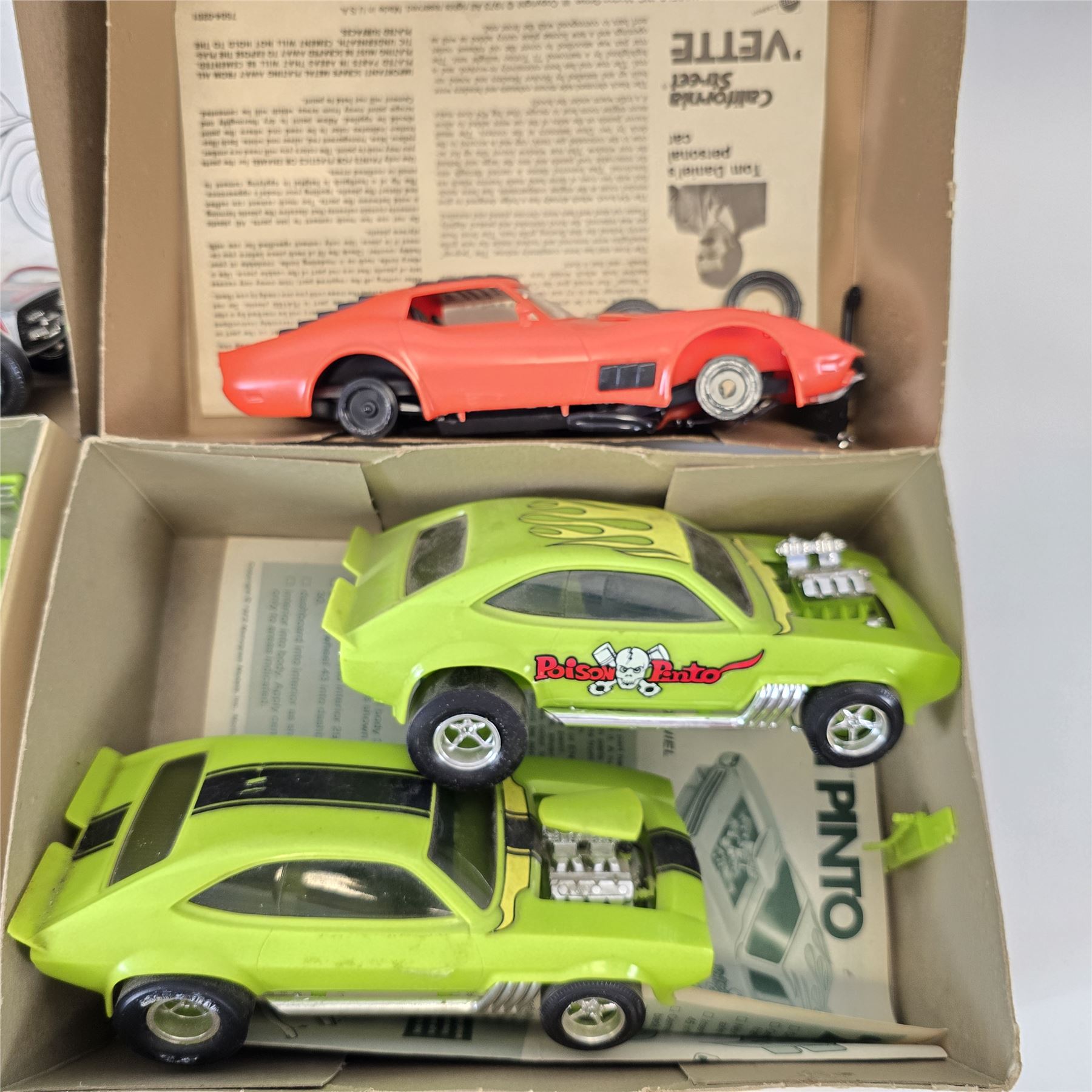 Mongrams include boxes for Sweet T, California Street Vette and Poison Pinto, Vette and Poison Pinto are built up as seen, there is an extra Poison Pinto, the Sweet T has an entirely different model kit in the box?