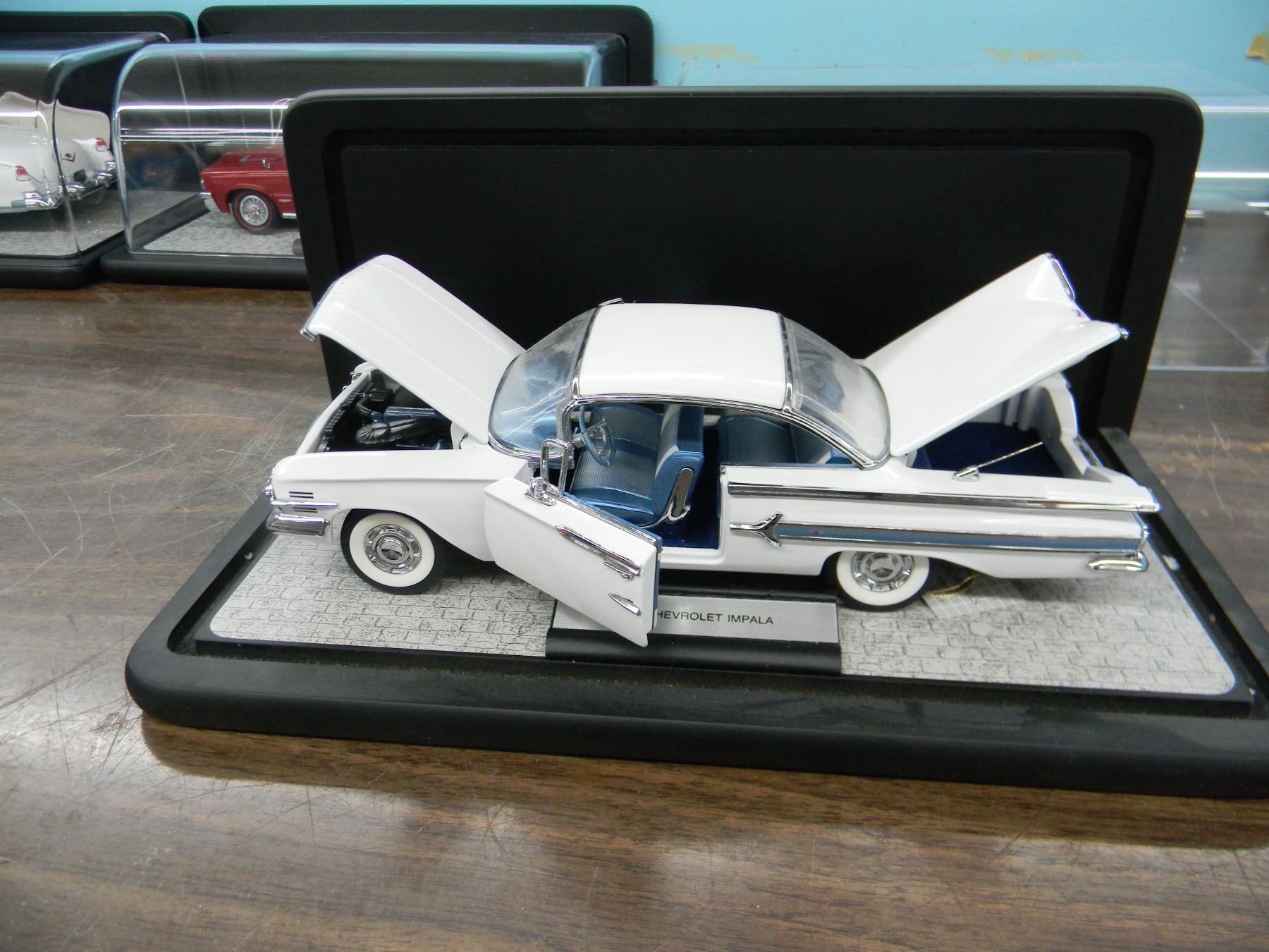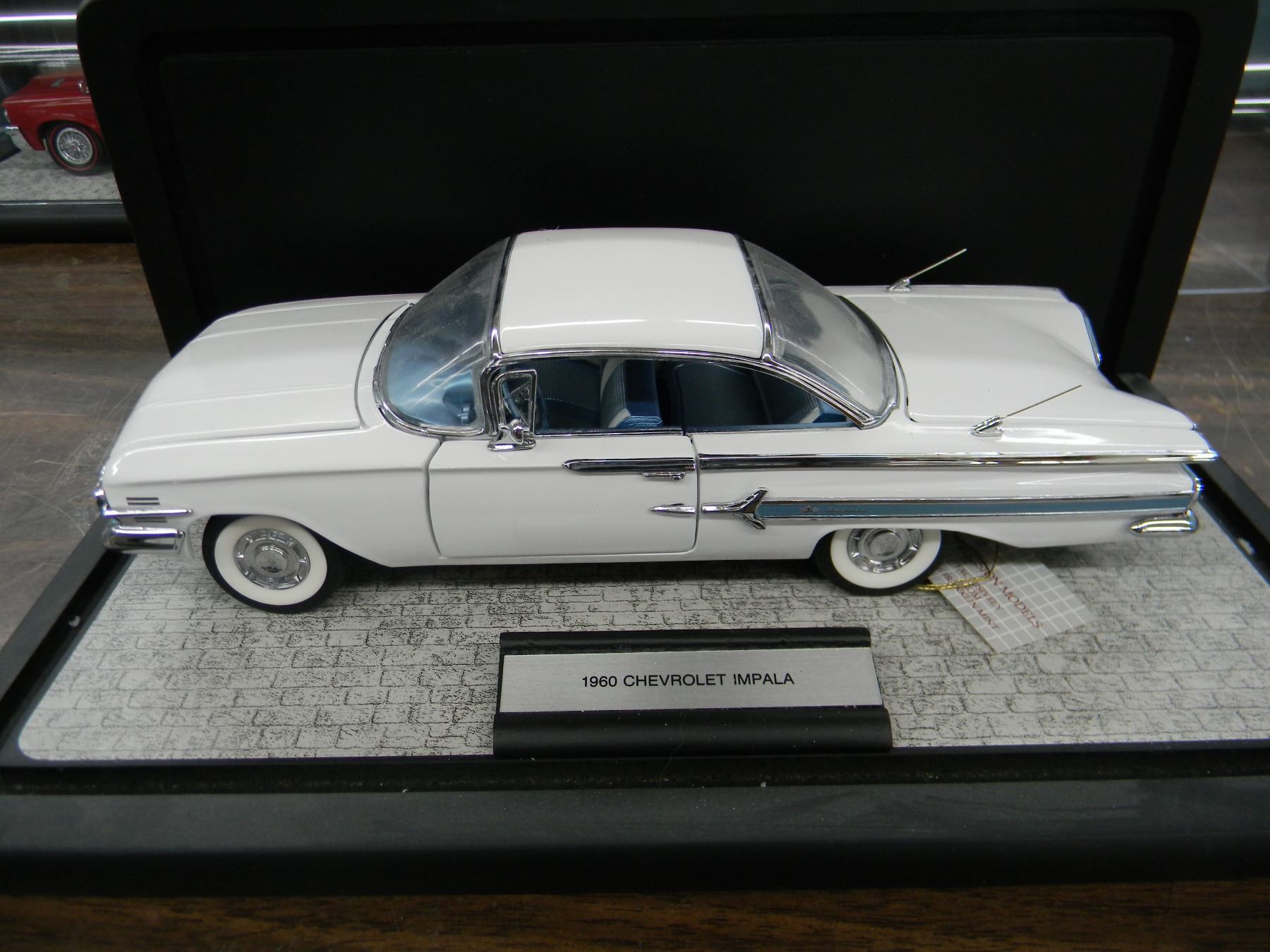 1960 white Chevrolet Impala created in great detail using heavy die cast metal. Offered circa 2000 by the Franklin Mint, this item comes complete with the optional clear display stand.