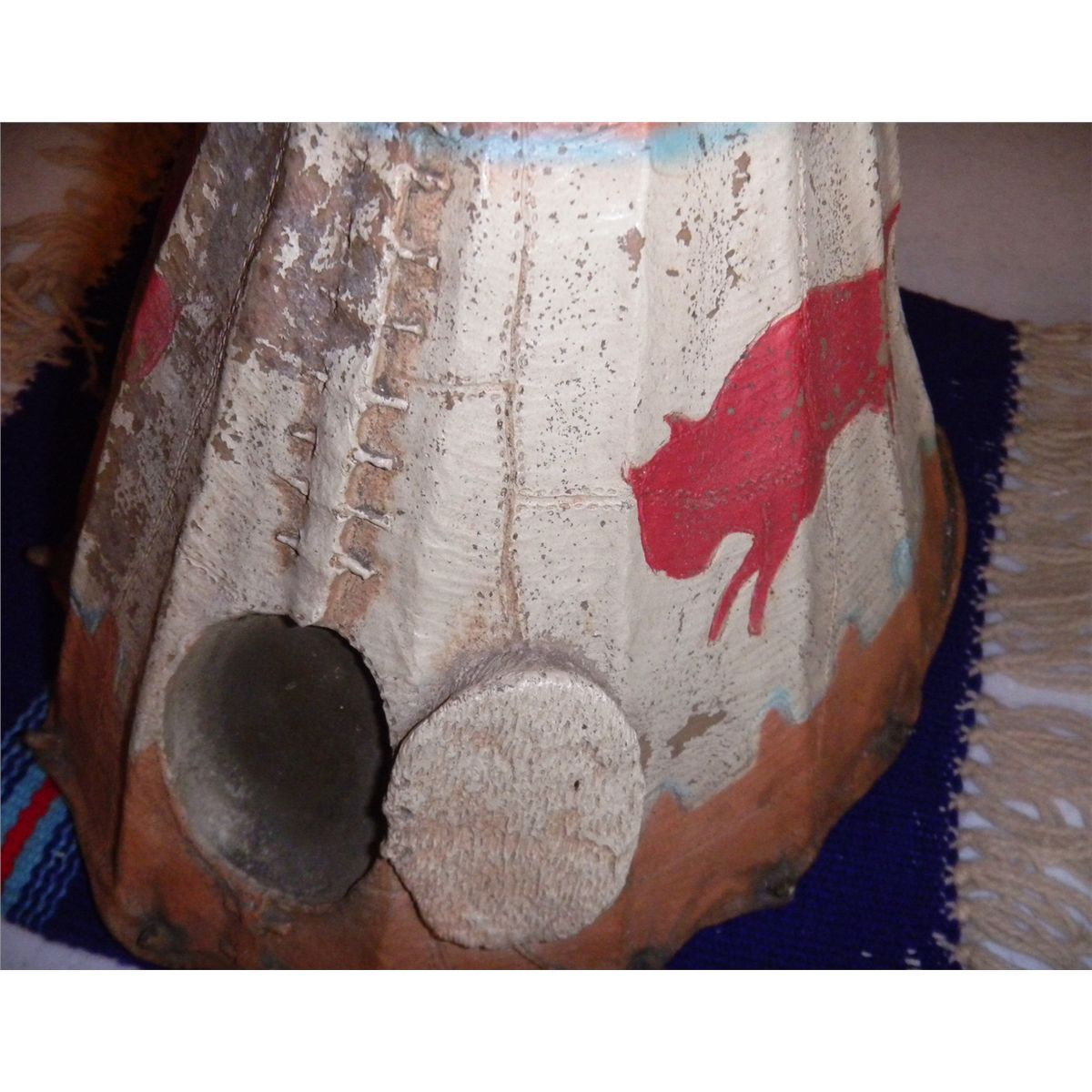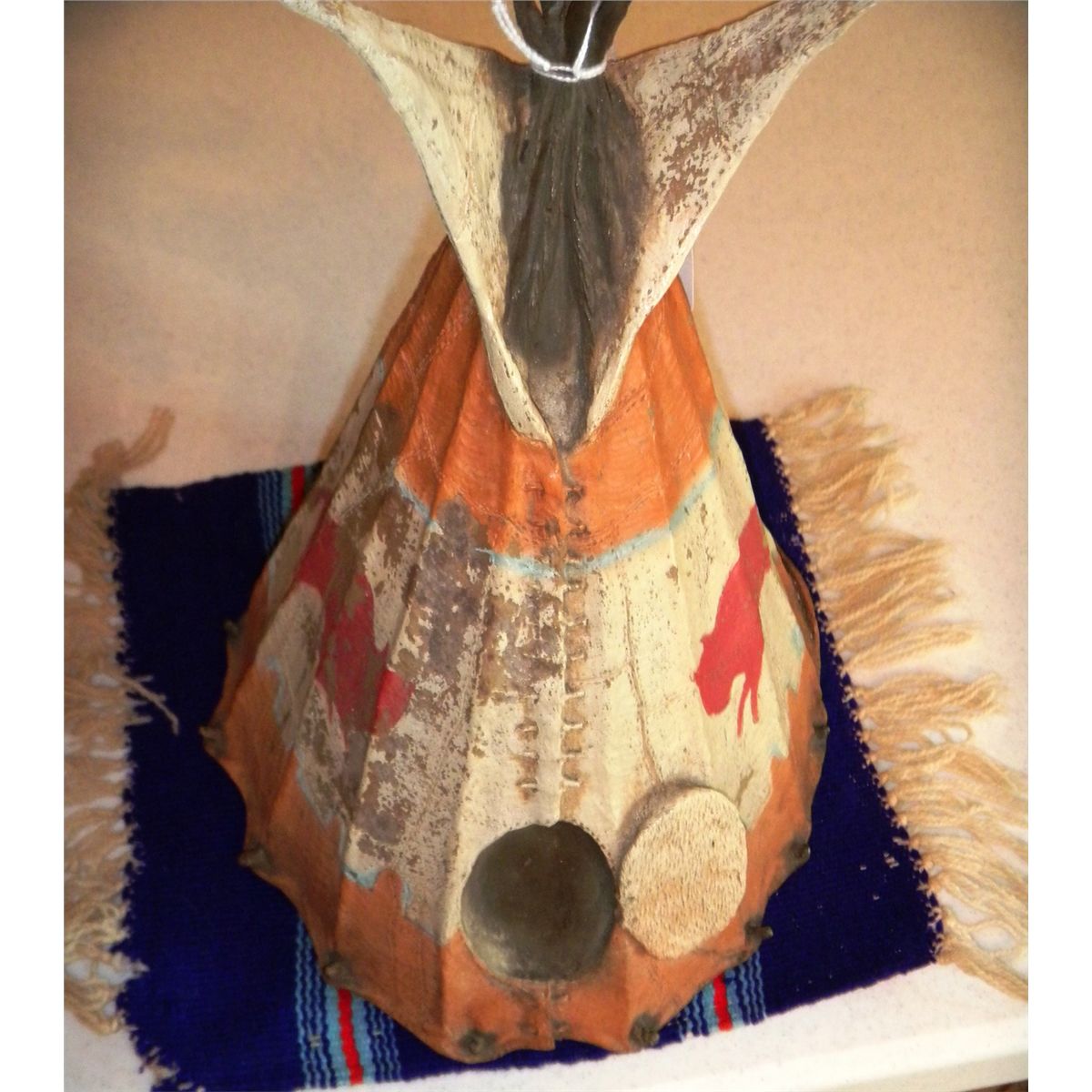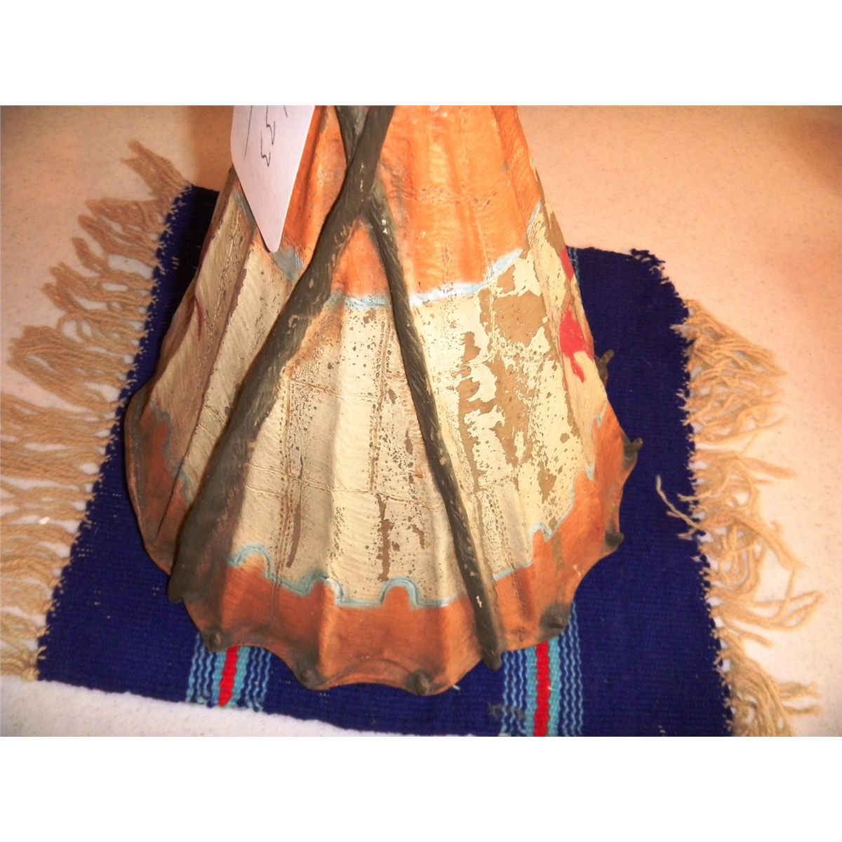 The Tee-Pee is made from an older petroleum based substance. The article is copyrighted 1974 - There are painted buffalo design and it Measures 9"x12". The Chemeyo weaving is about 10"x10" Shipping $25.00